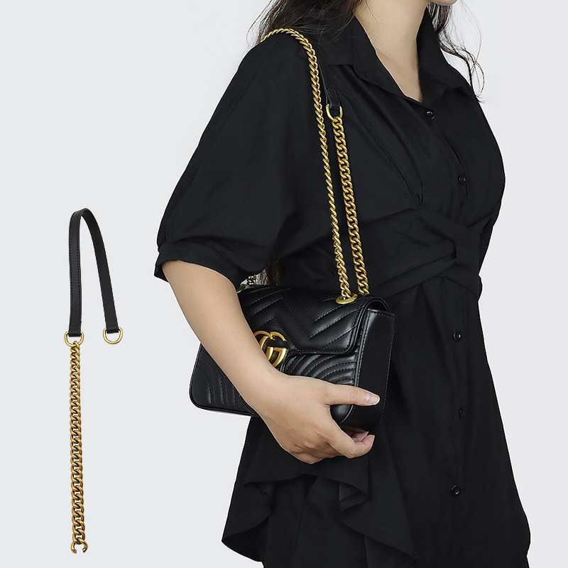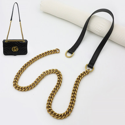 饰悦适用古驰铝合金腋下包包链条配件单肩斜挎肩带牛皮古金包带粗