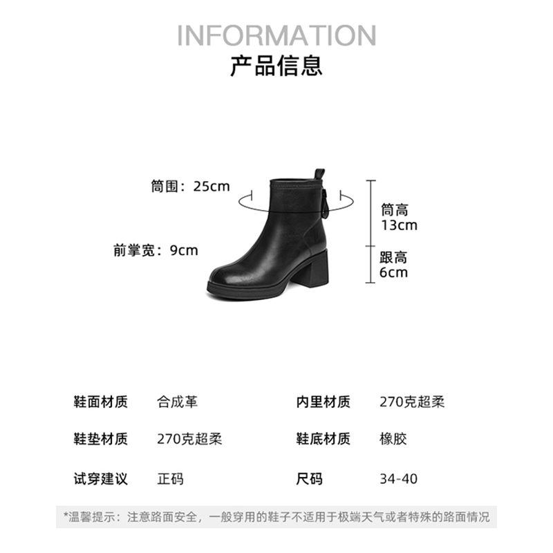 卓诗尼2025秋冬新款粗跟短靴女时尚舒适后拉链软皮短筒靴切尔西靴
