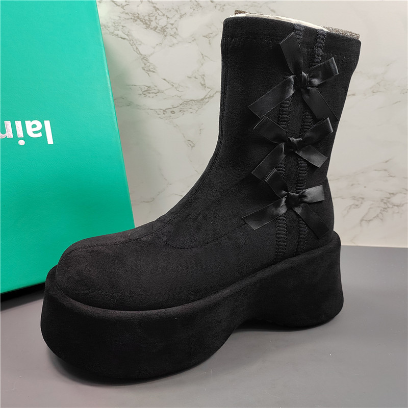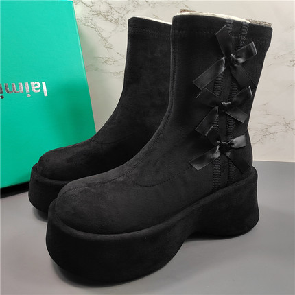 商场同款真皮蝴蝶结厚底马丁靴女