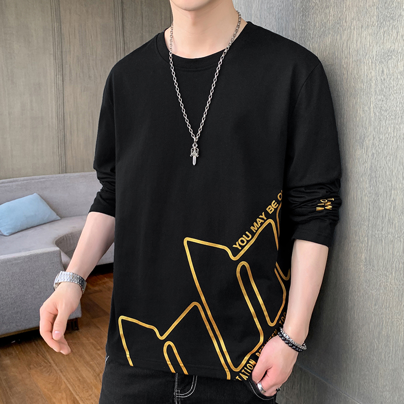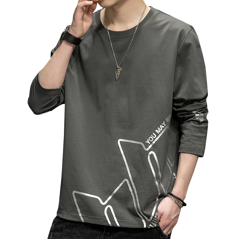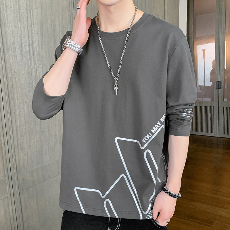 纯棉长袖T恤男士春秋季韩版潮流宽松印花上衣休闲百搭卫衣打底衫