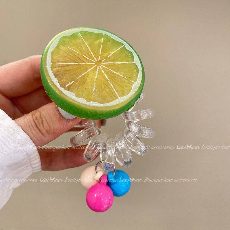 橙C~清新夏季电话线发圈高级感扎头绳女可爱扎头发橡皮筋2024新款