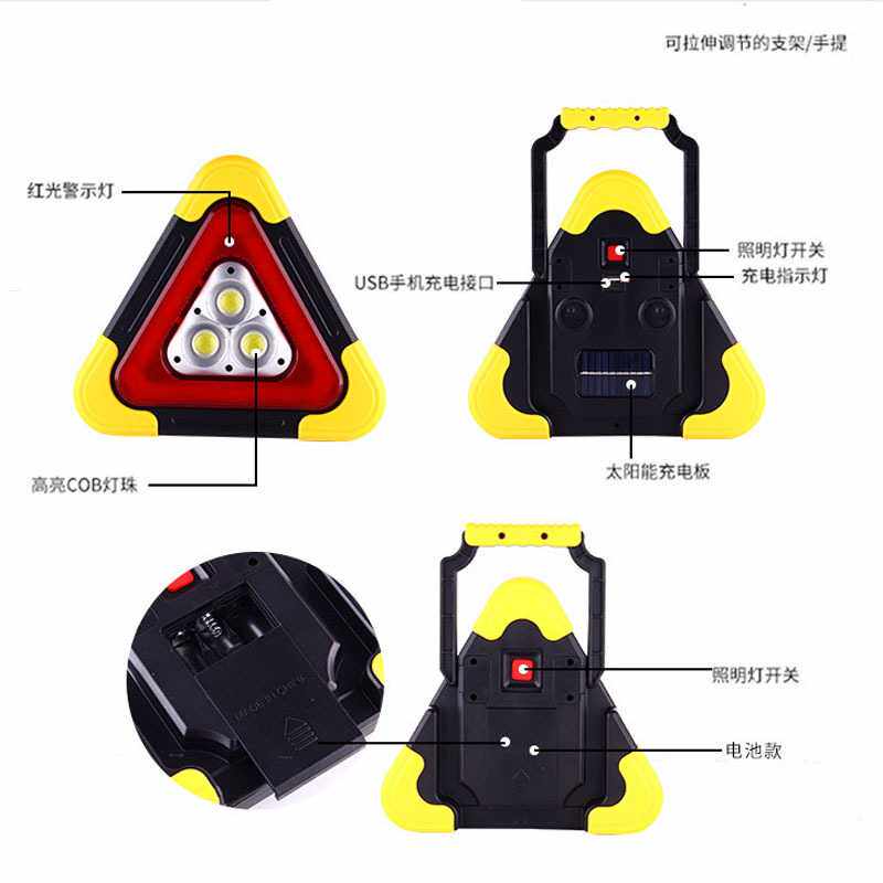 汽车用品自驾安全应急灯三角架警示牌太阳能LED投光灯路障警示灯