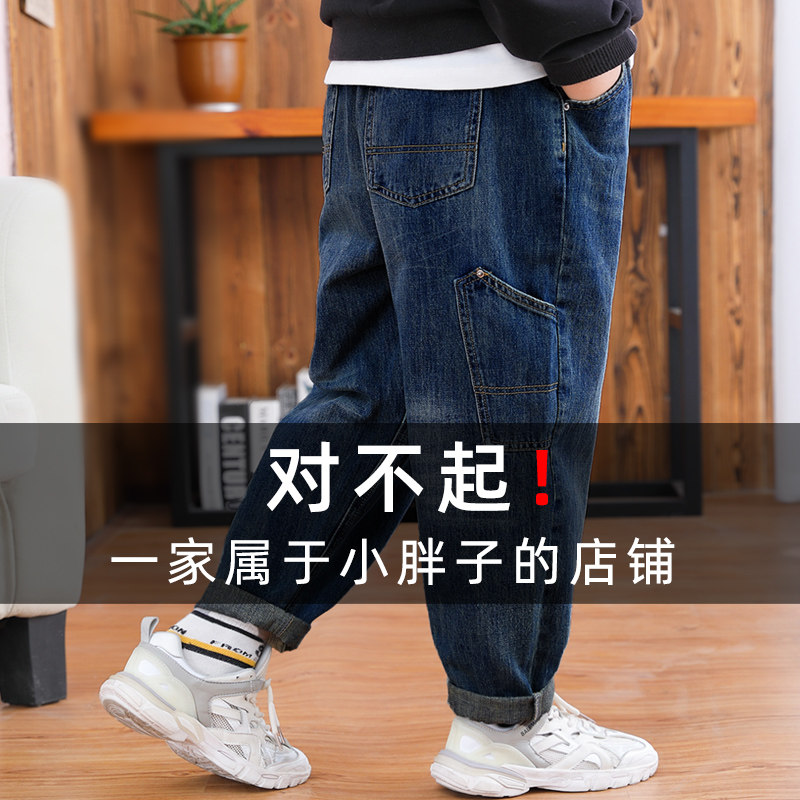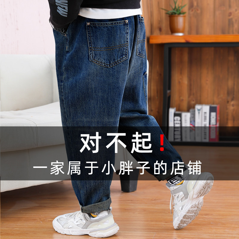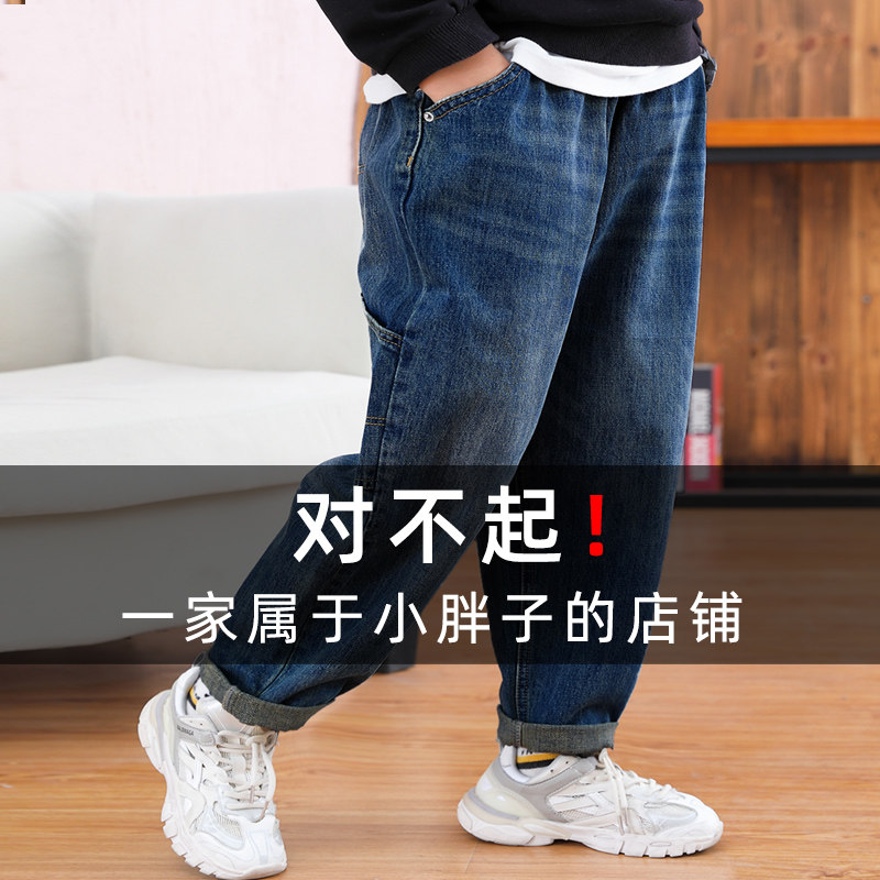 胖童牛仔裤春秋大码男童裤子加肥加大弹力宽松胖孩休闲裤大童长裤