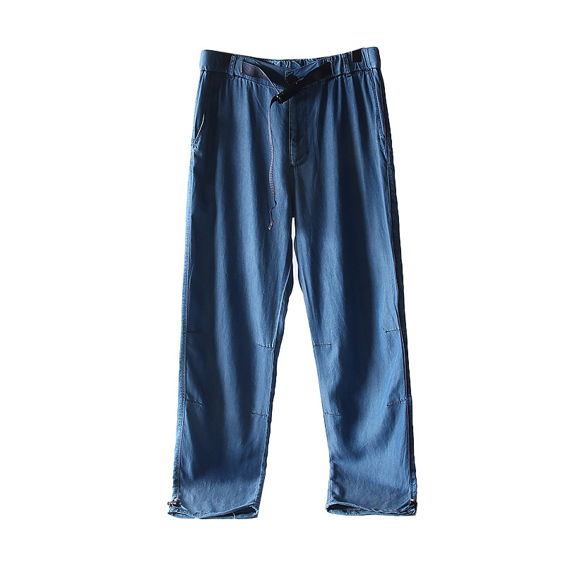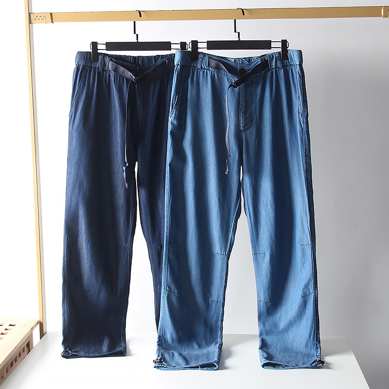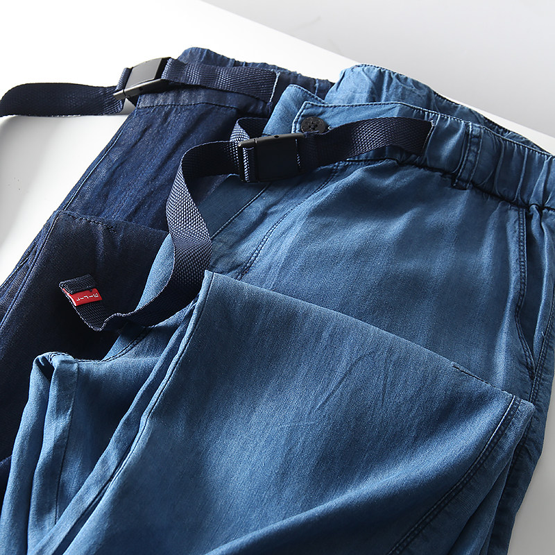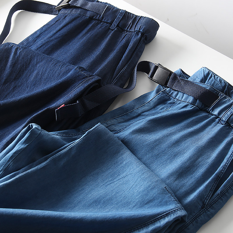 自带凉感!天丝牛仔面料!夏季男士外贸青年休闲卡扣轻薄牛仔长裤