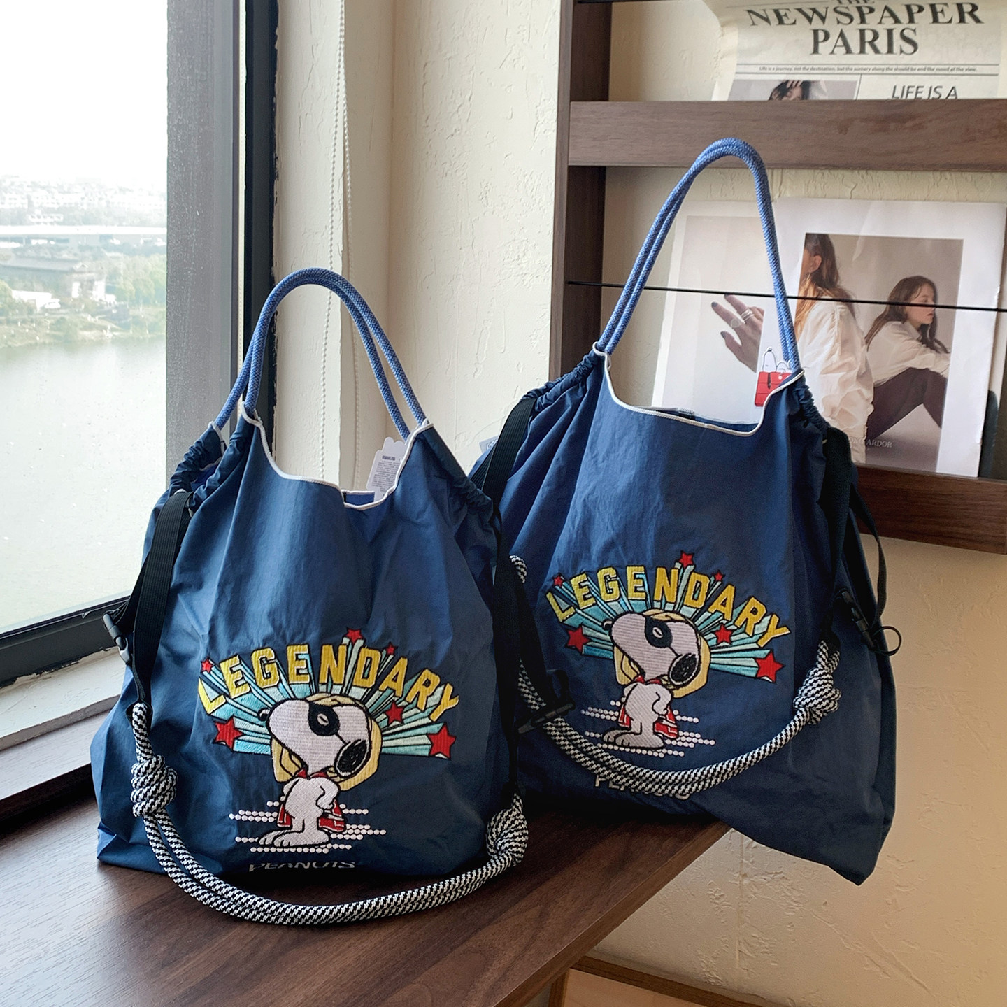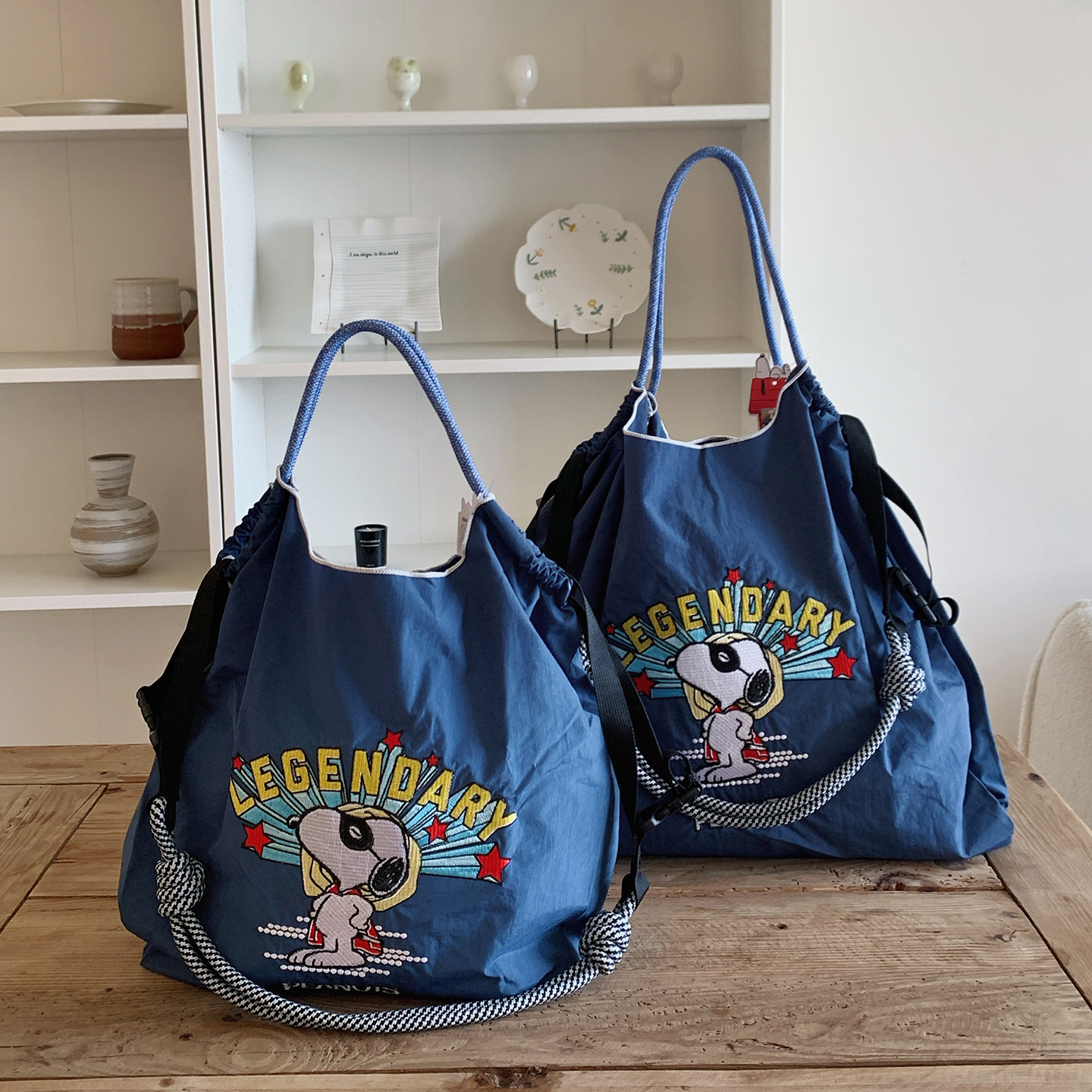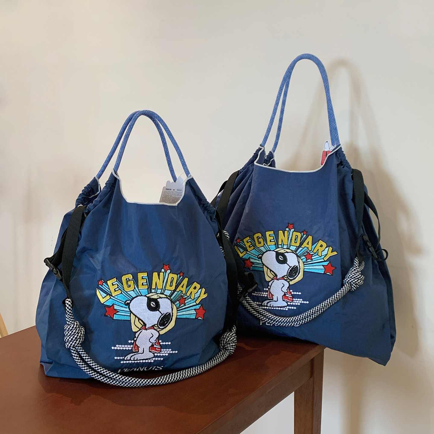 日系【正版】史努比超人刺绣购物袋新款尼龙环保袋百搭单肩斜挎包