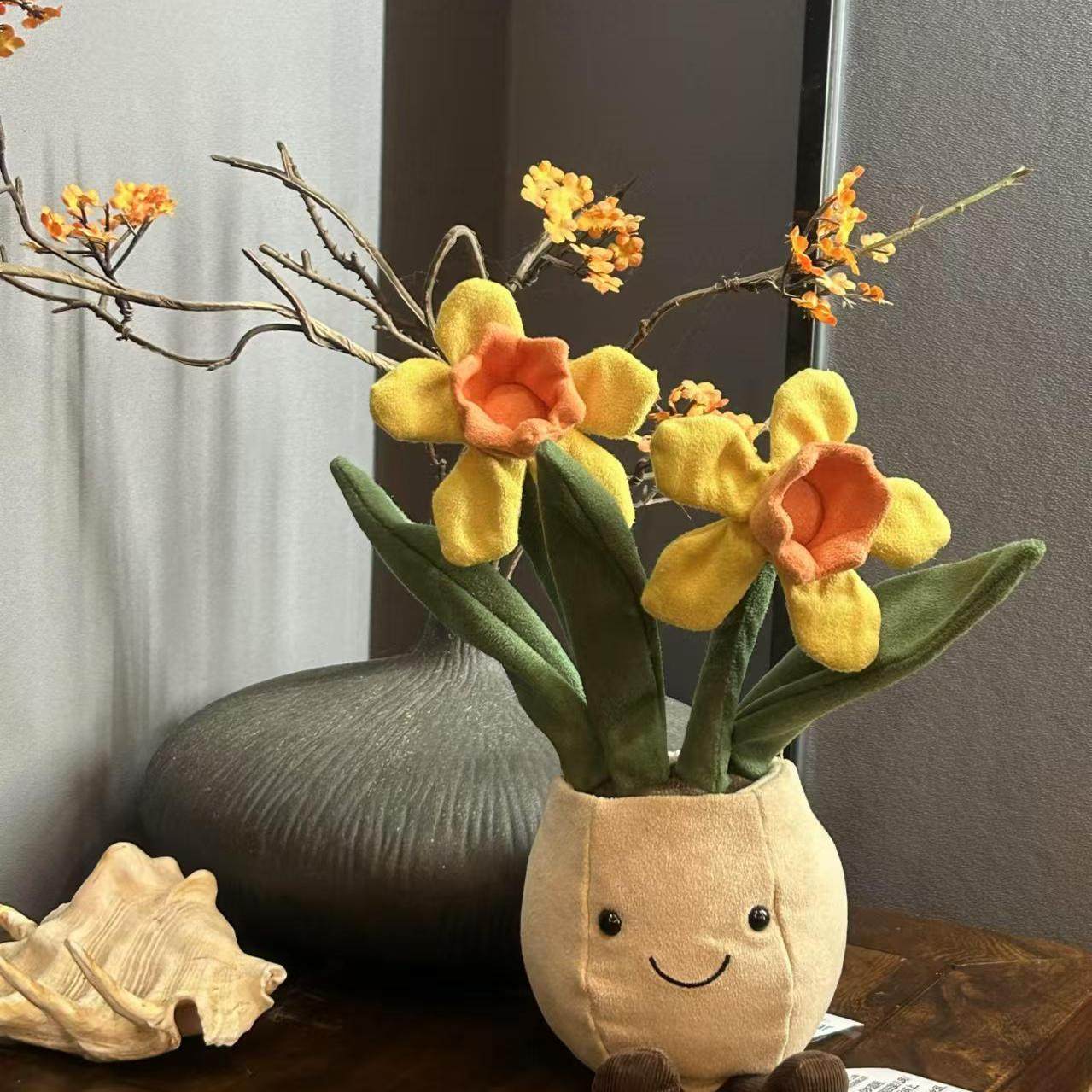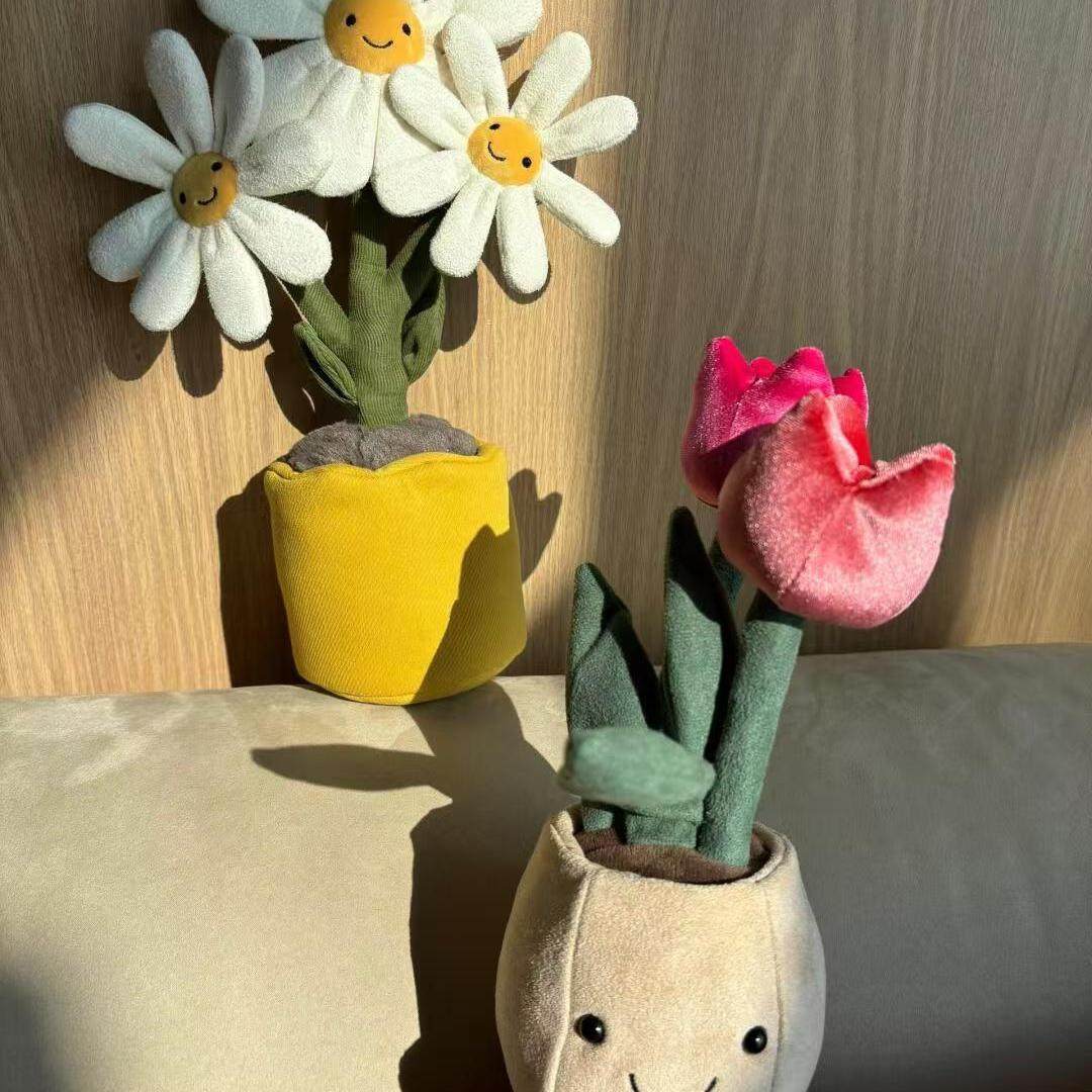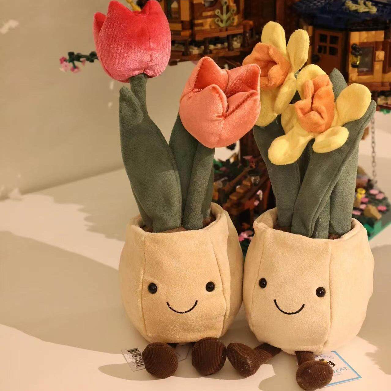 英国jellycat趣味盆栽水仙花雏菊太阳花郁金香毛绒玩偶盆景摆件