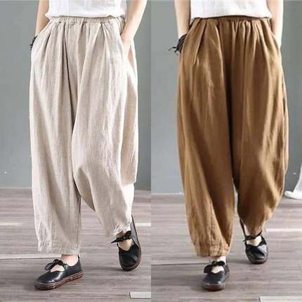 棉麻灯笼裤女宽松老爹裤阔腿萝卜