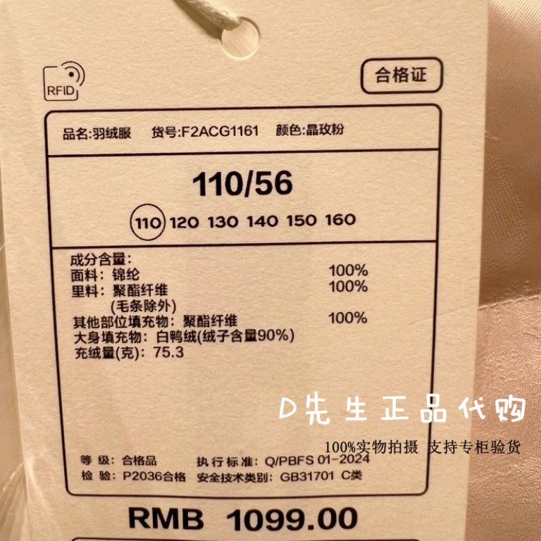 F2ACG1161 mini peace太平鸟童装2026春装新款女童羽绒服 1099