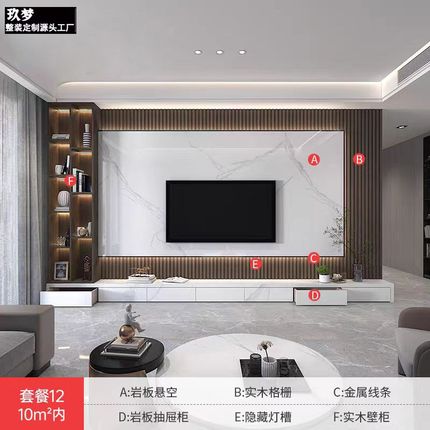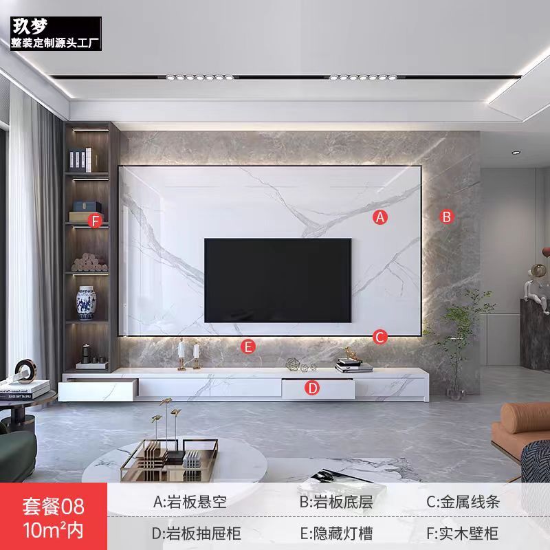 岩板悬空电视背景墙现代简约瓷砖客厅大理石2024新款轻奢影视墙