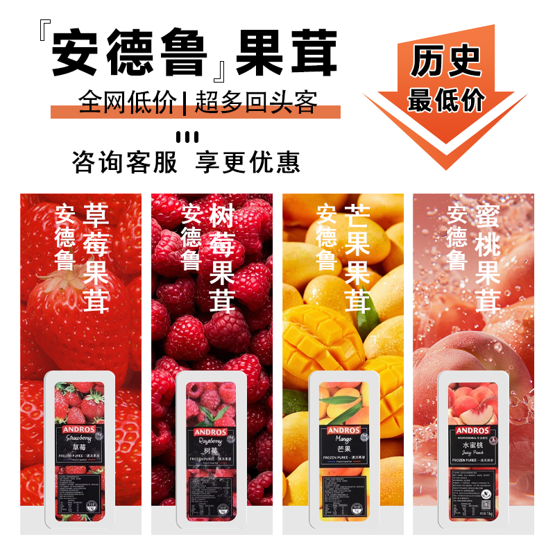 安德鲁果茸芒果树莓果溶覆盆子蓝莓水蜜桃草莓果酱荔枝百香果果蓉