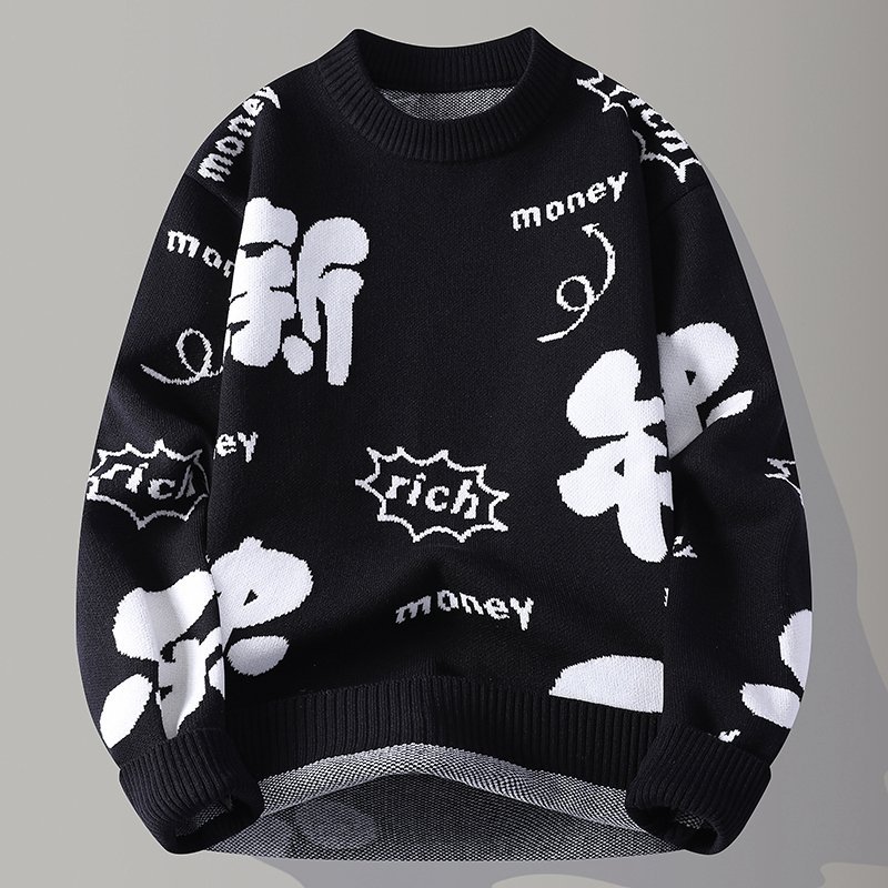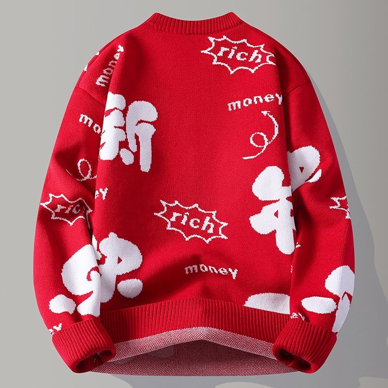 新年元旦年会毛衣男款本命年过年喜庆上衣服青少年学生针织衫以純