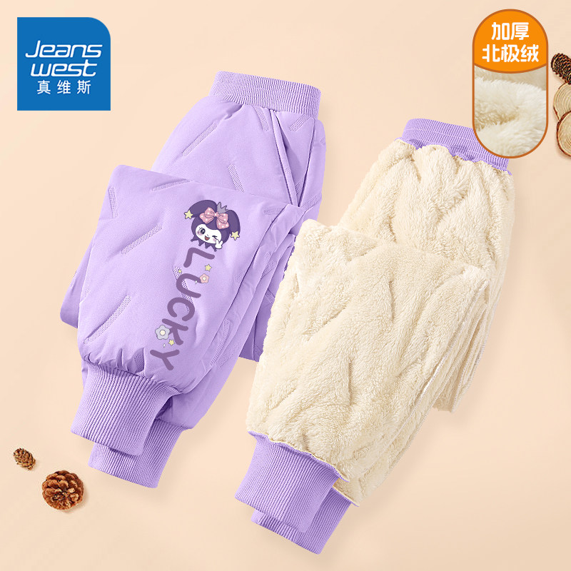 真维斯童装儿童加绒裤子女童秋冬款防风防水卫裤女孩冬季保暖棉裤