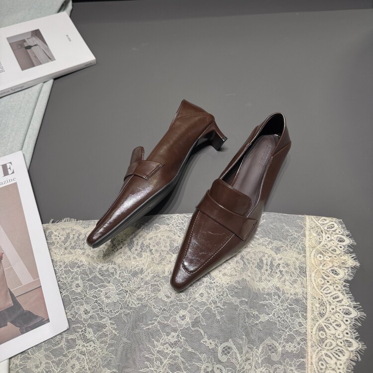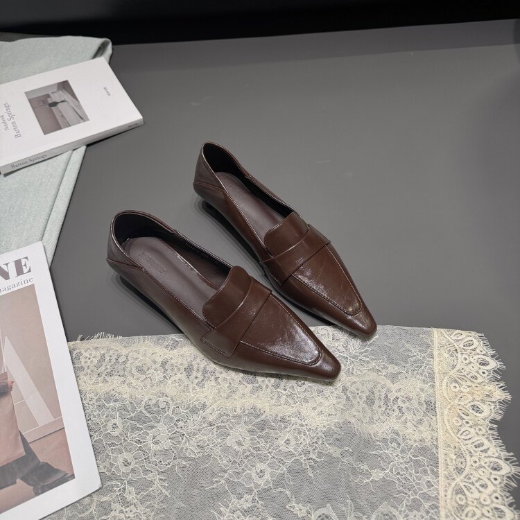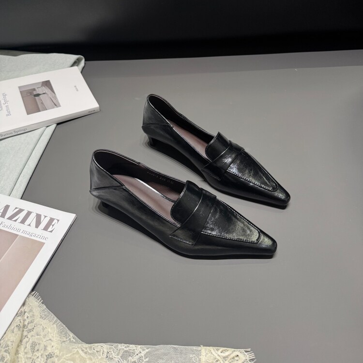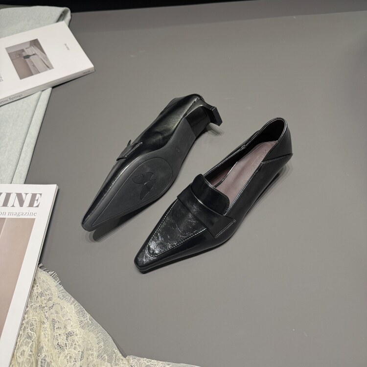 韩版尖头深口单鞋女2026春一脚蹬极简小皮鞋低跟青年时装乐福女鞋
