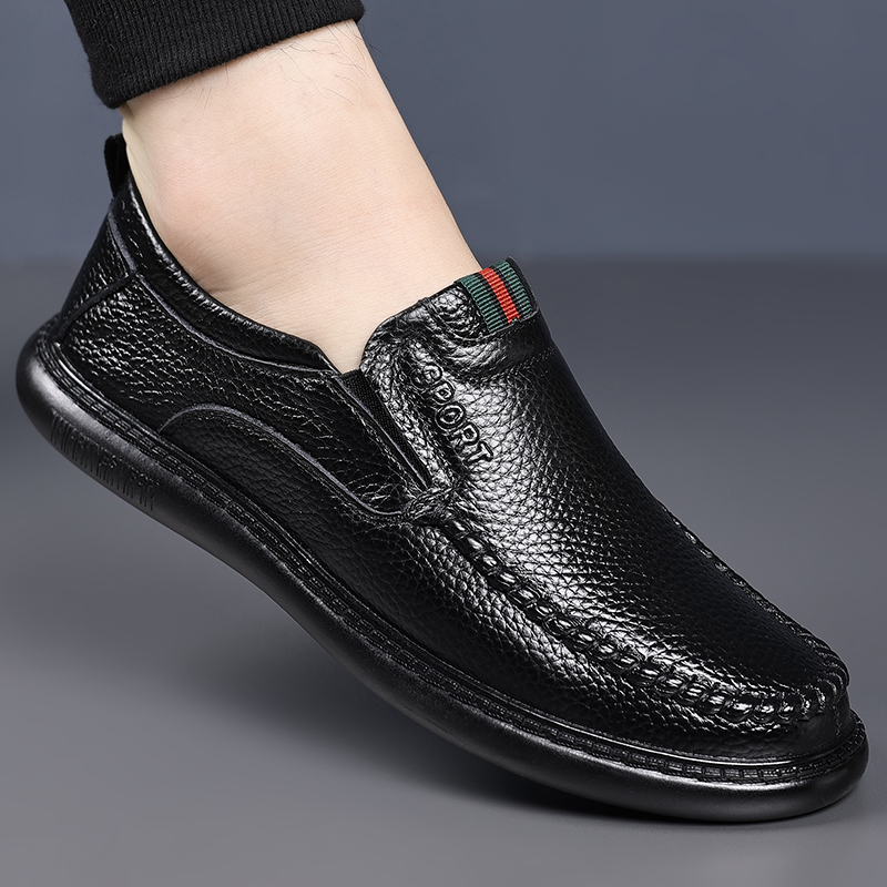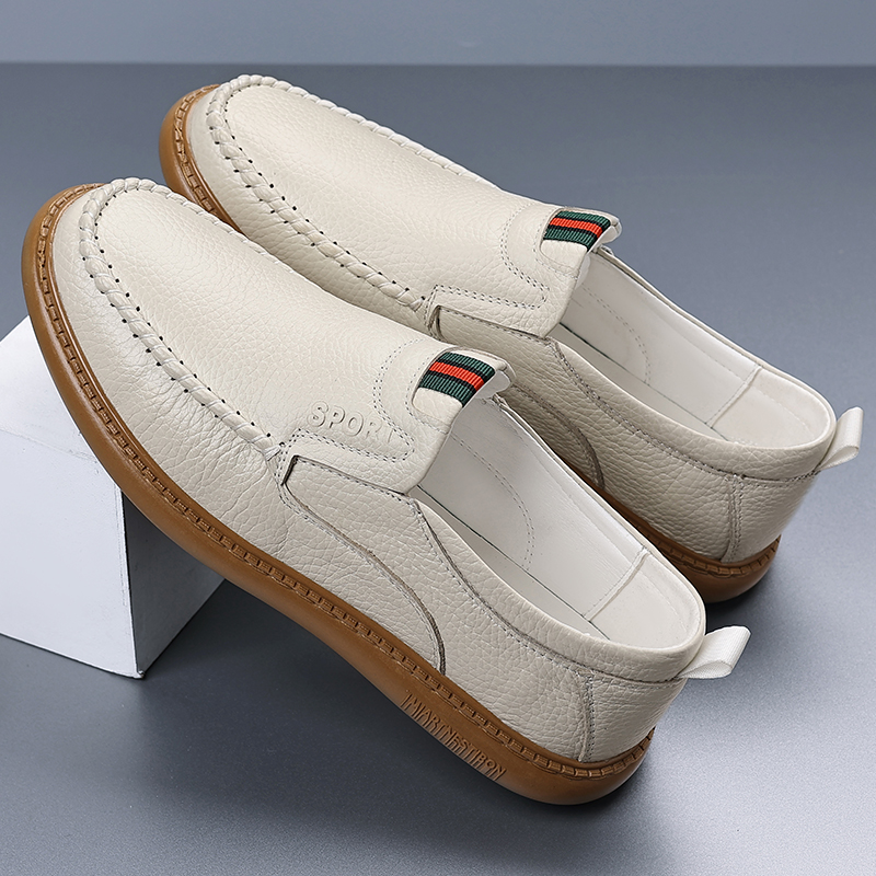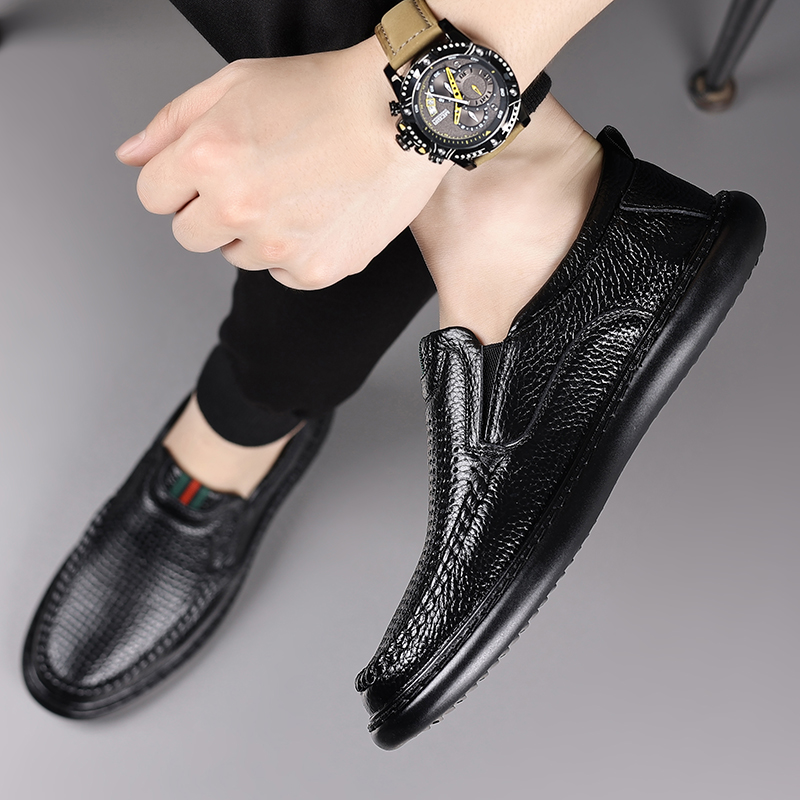 真皮豆豆鞋男2025春夏新款头层牛皮休闲皮鞋一脚蹬软底透气乐福鞋