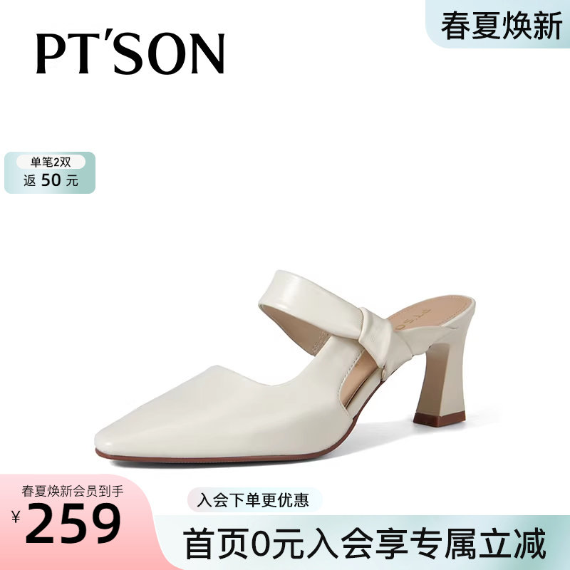 博主同款百田森超火绝美半拖鞋女法式尖头半拖鞋夏外穿高跟鞋女