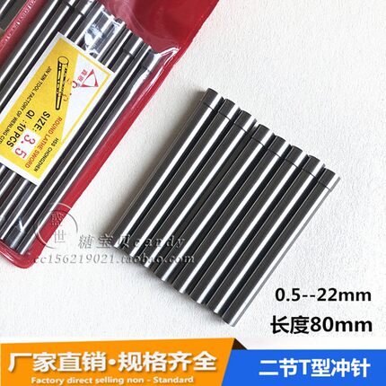 高速钢二节T型冲针 模具冲头加硬白钢凸模顶针0.5 0.6 0.7-2.7X80