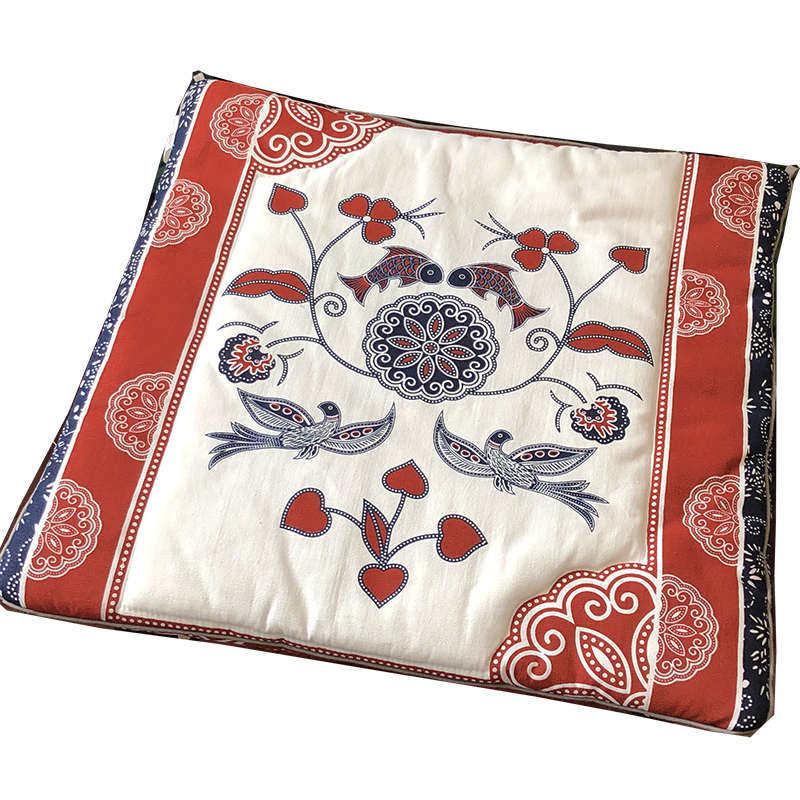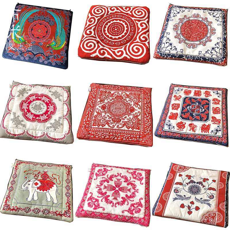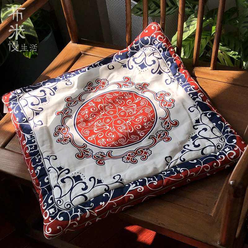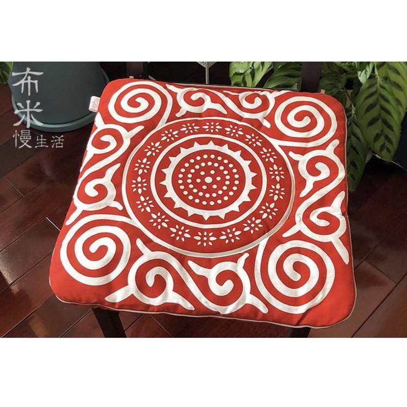 坐垫椅子垫餐椅垫沙发垫 布络中式手工纯棉布艺双面坐垫 喜庆红色