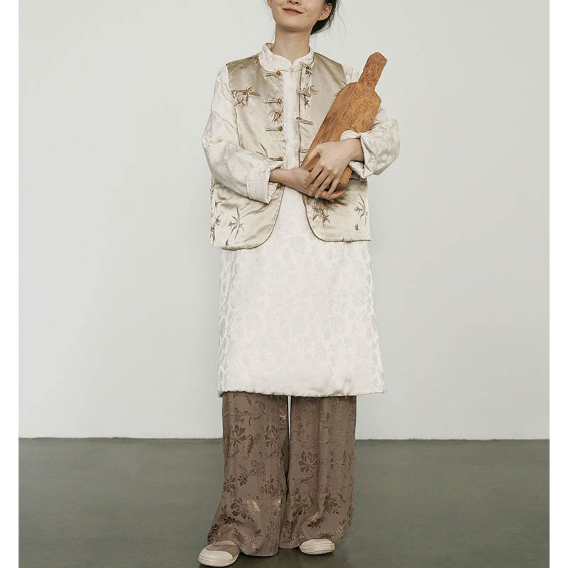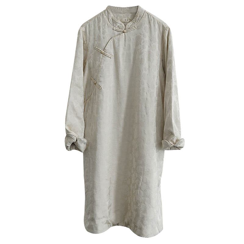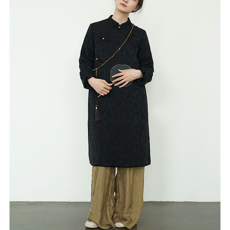 新中式人丝提花夹棉旗袍复古保暖改良国风中长款茶服连衣裙秋冬