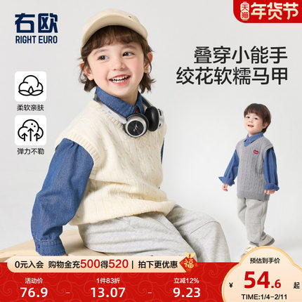 右欧儿童马甲男童针织背心学院风洋气2025春季新品童装女童毛衣