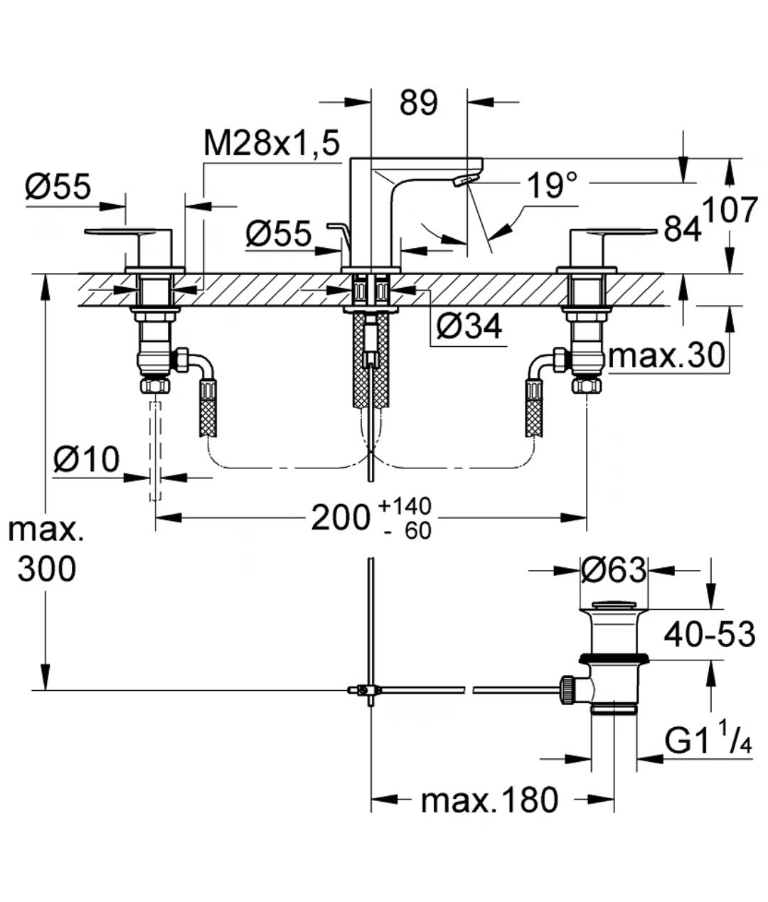 高仪20187000三孔面盆龙头 双把手三孔台下盆龙头2018700C