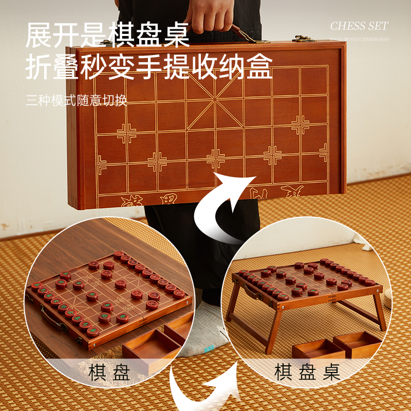 中国象棋实木棋盘高档送礼大号象棋棋盘木质红木象棋桌户外便携式