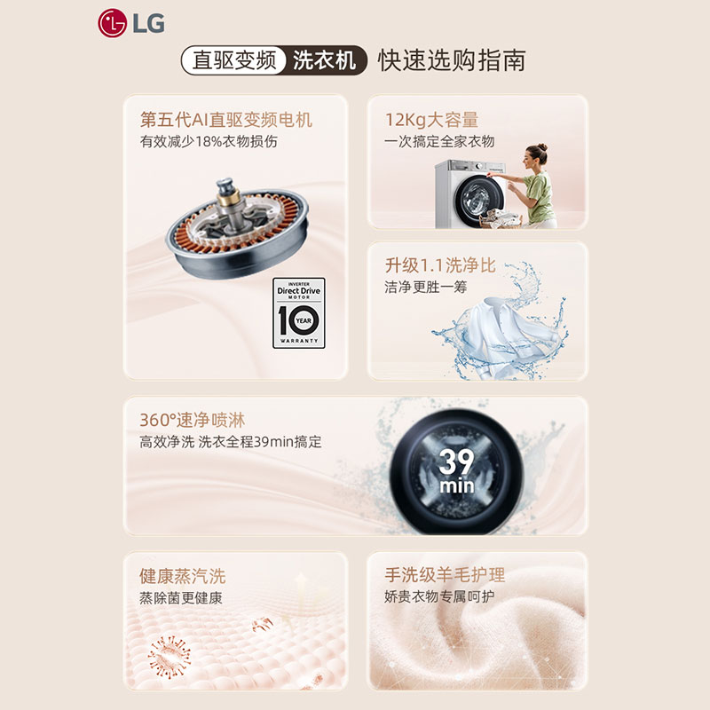 LG小旋风MAX洗烘套装12kg洗衣机FCW12Y4WA热泵干衣机RH10V9AV2WR