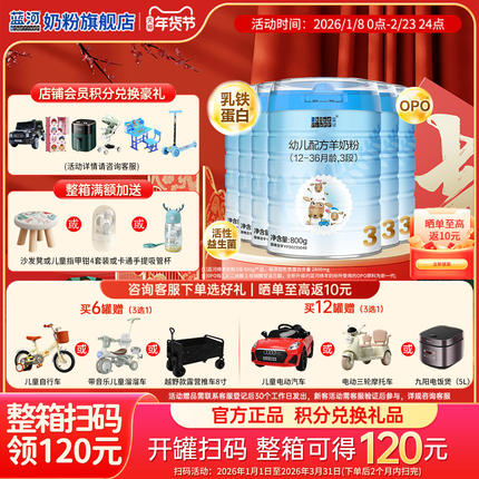 6罐扫码领120元 蓝河绵羊奶3段婴幼儿配方羊奶粉1~3岁800g6罐旗舰