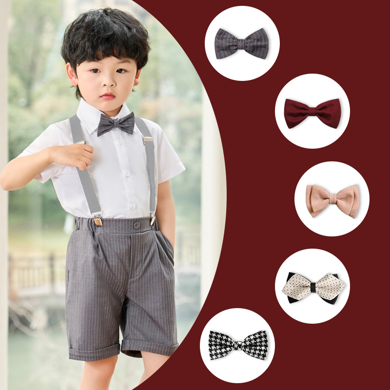 儿童领结男童女童西服衬衫纯色双层领结男孩小学生演出表演蝴蝶结