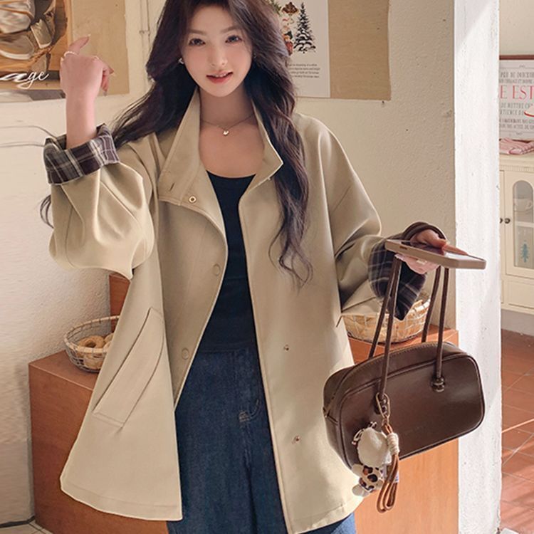 高级撞色风衣2025外套春秋出片宽松英伦新款大衣显瘦中长款外套女