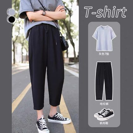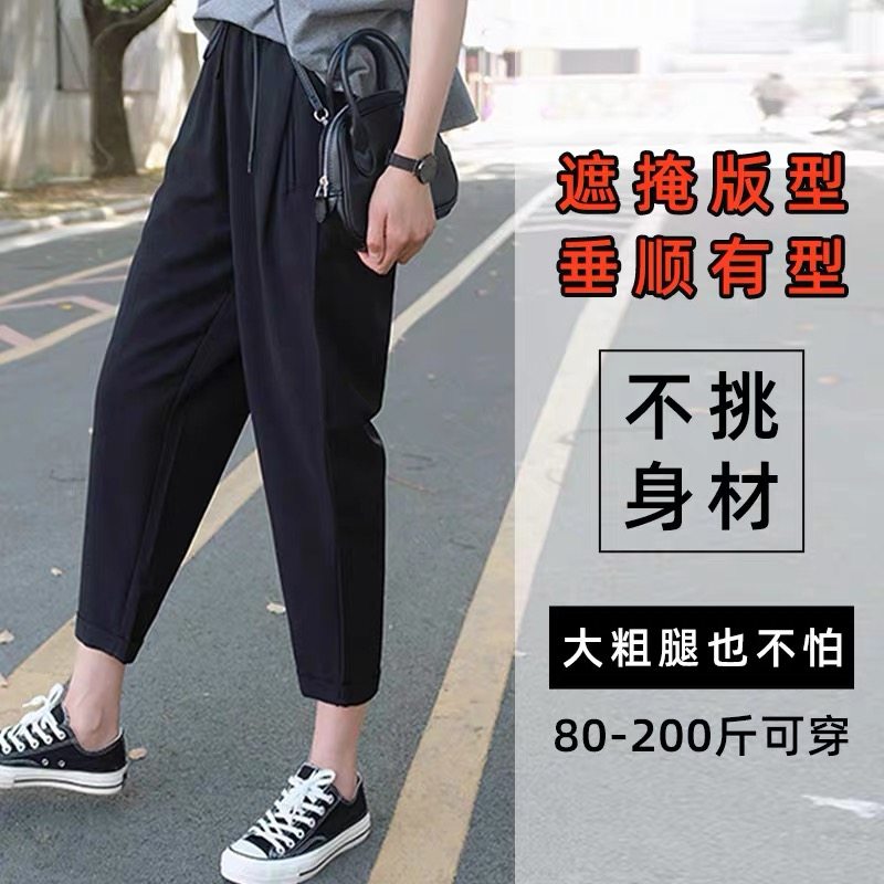 春夏新款胖MM超大码显瘦高腰哈伦裤女宽松显瘦九分裤百搭休闲裤潮