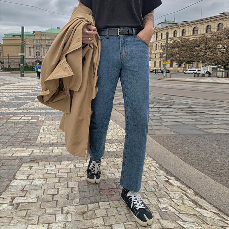 MRCYC韩系潮流百搭九分黑色牛仔裤男直筒宽松时尚网红休闲长裤子