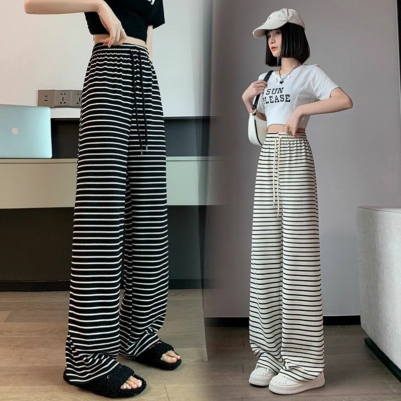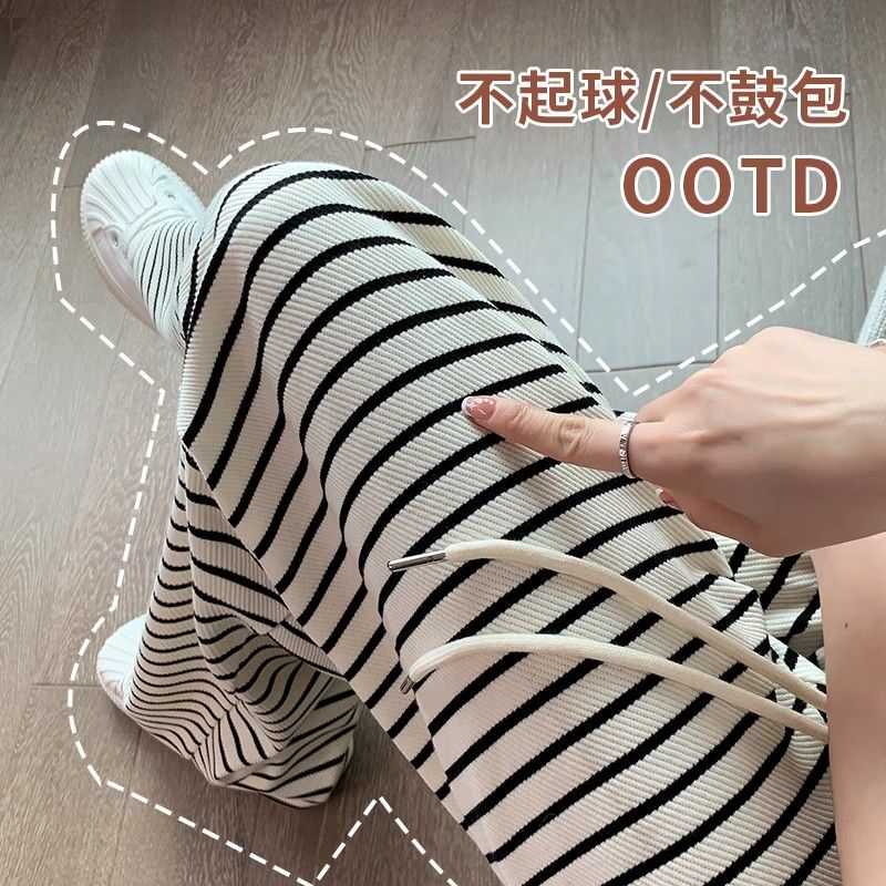 黑白色条纹裤女2025春秋新款休闲裤宽松运动休闲阔腿显瘦长裤
