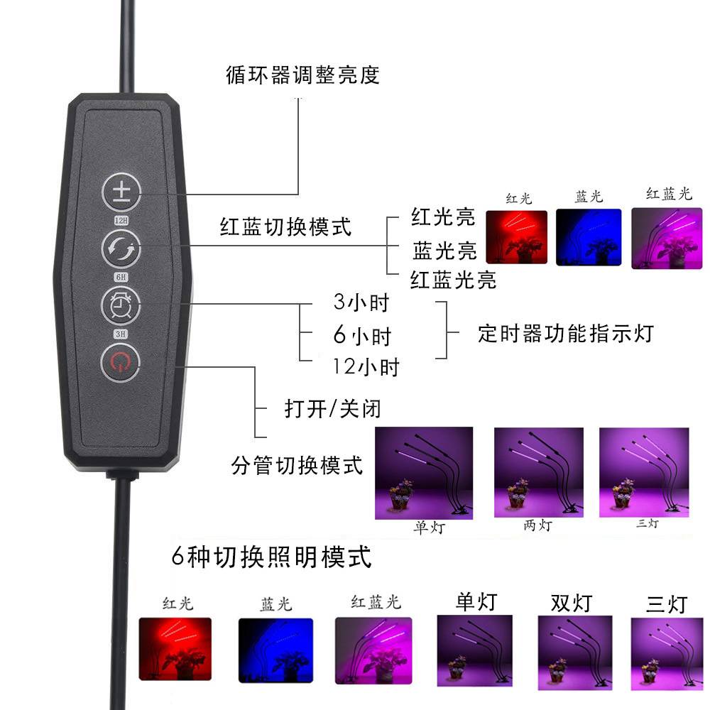 LED三管植物生长灯 全光谱补光灯 循环定时 室内多肉植物夹子3头