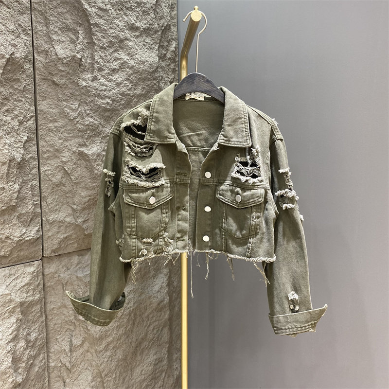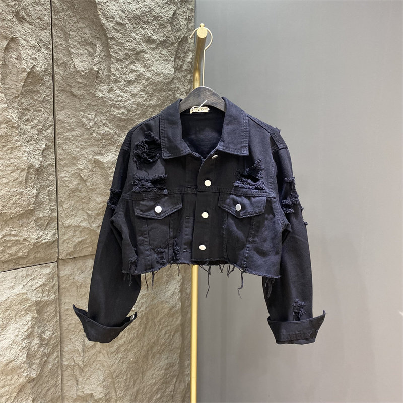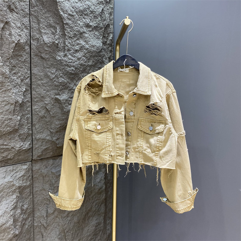 韩版2025年春秋季时尚破洞宽松休闲短款牛仔外套女装洋气甜酷上衣