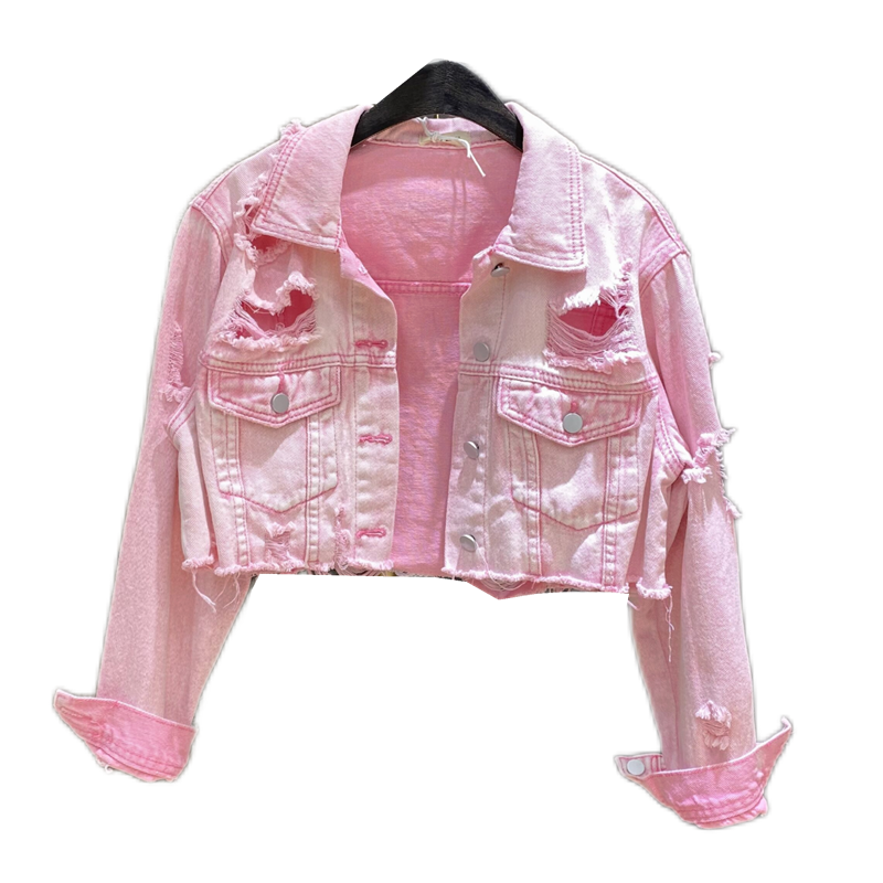 宽松阔版粉色洋气短款牛仔外套