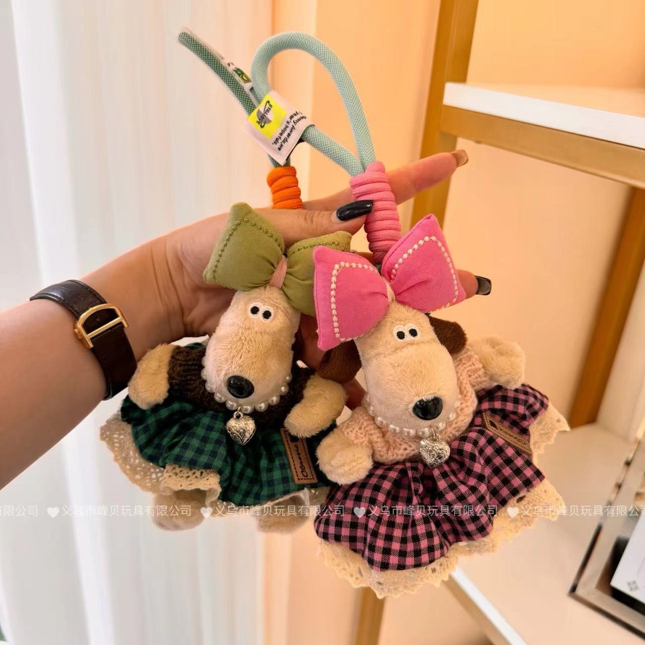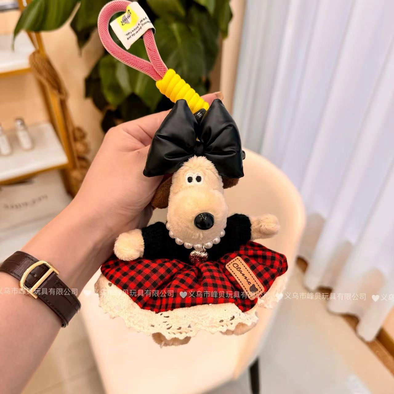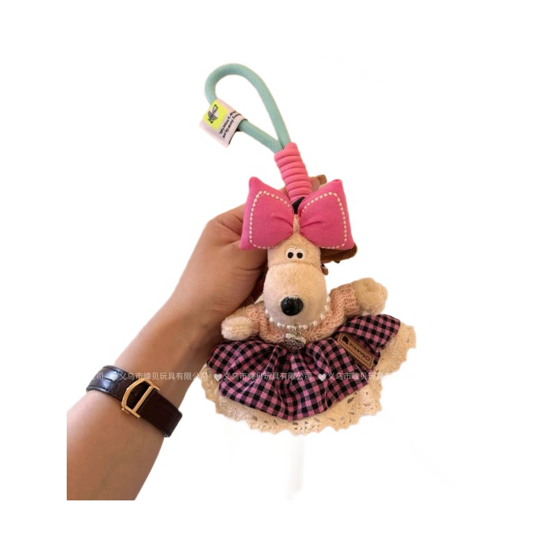 黑红格子蕾丝边掌门狗斜跨针织半身裙毛绒玩具钥匙扣挂件包挂摆件