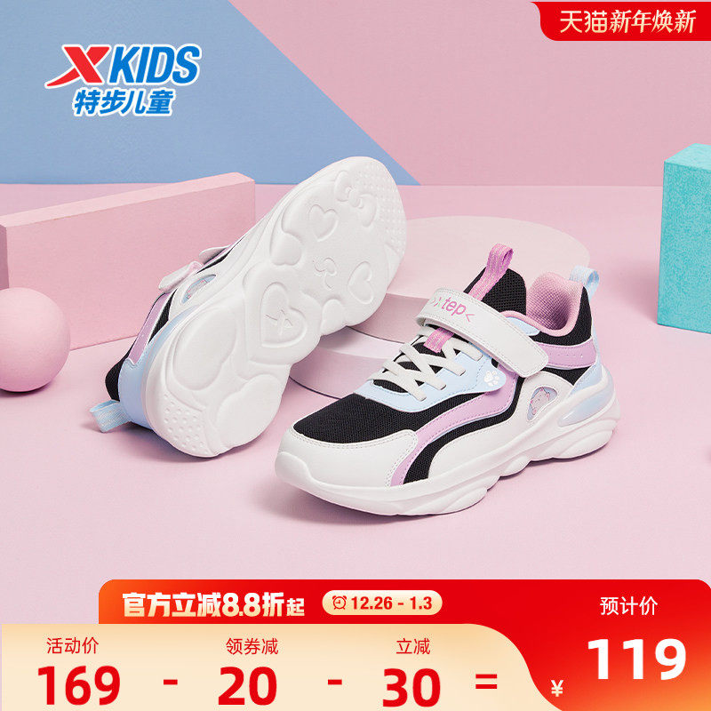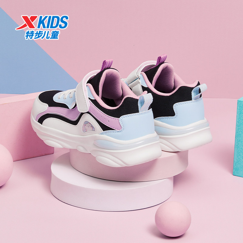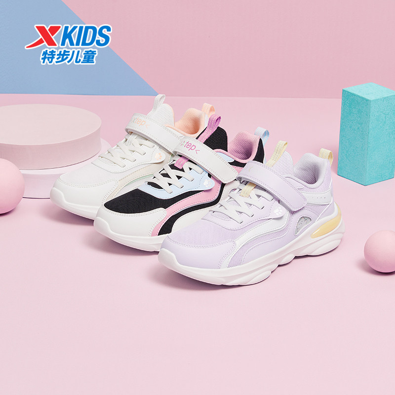 特步魔术贴休闲女中大童运动鞋