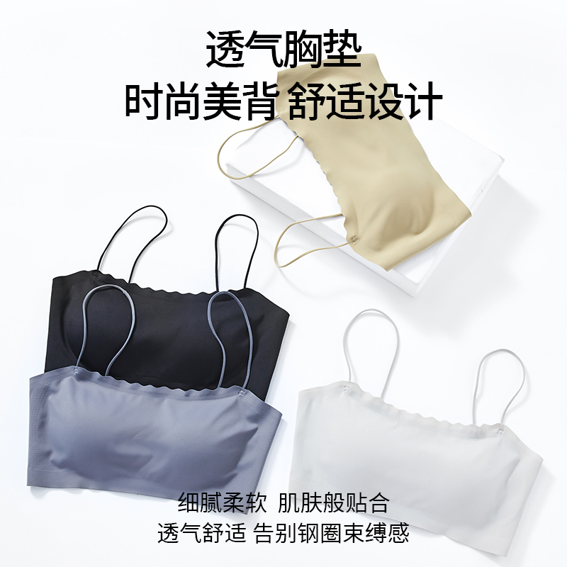 带胸垫文胸一体防走光一片式外穿内搭细肩带美背吊带背心抹胸女夏