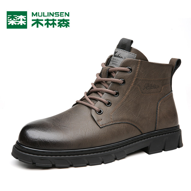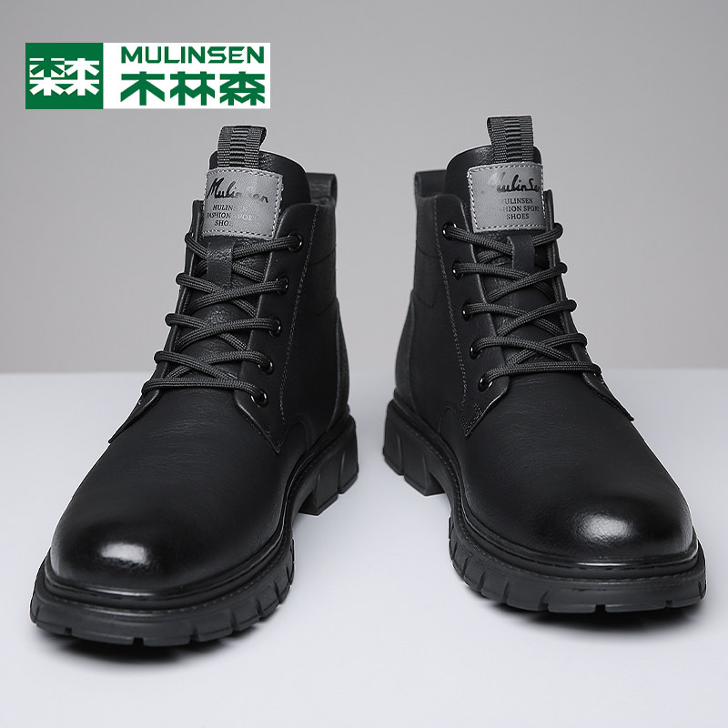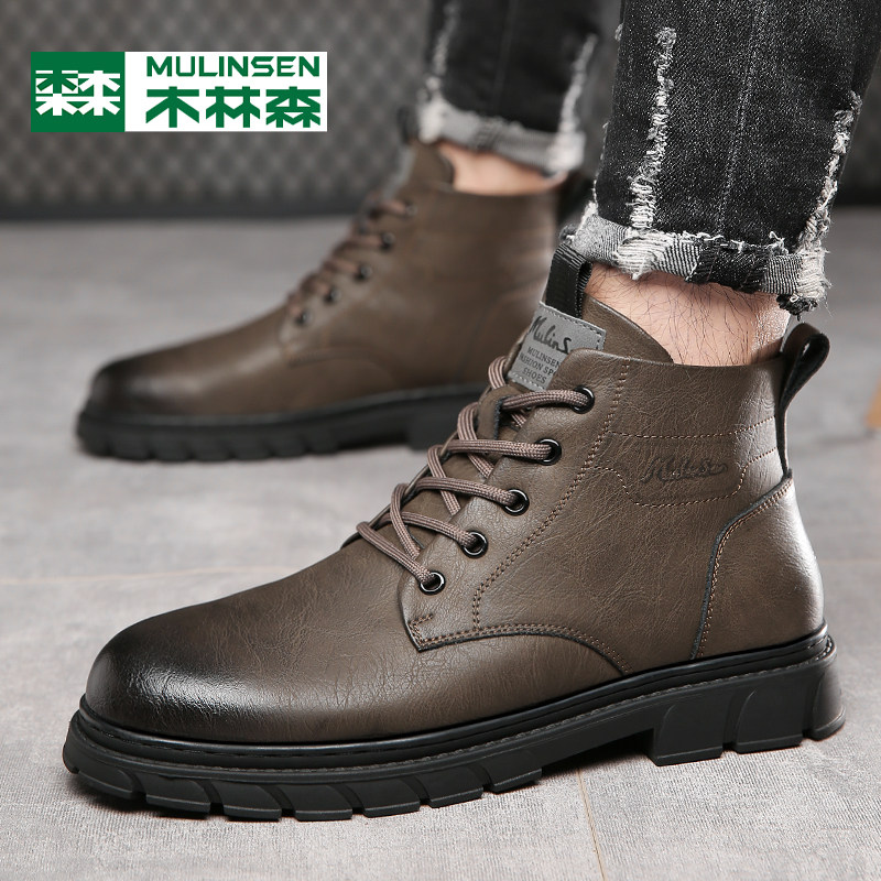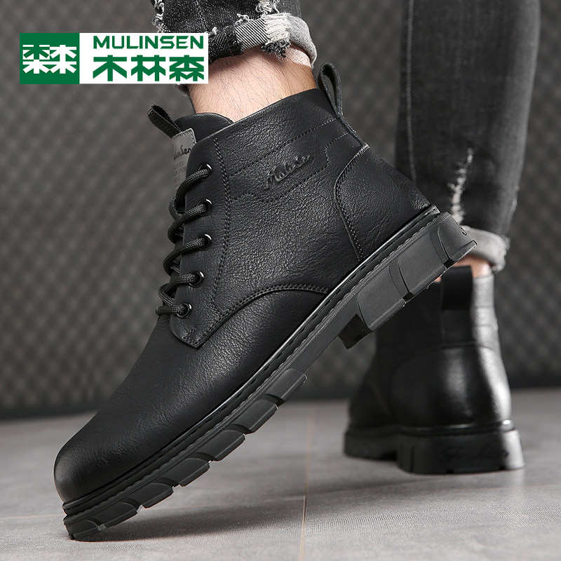 木林森男士马丁靴男款潮流2025冬季棉鞋男加绒保暖真皮英伦高帮鞋