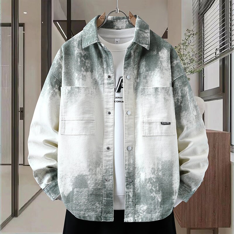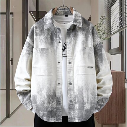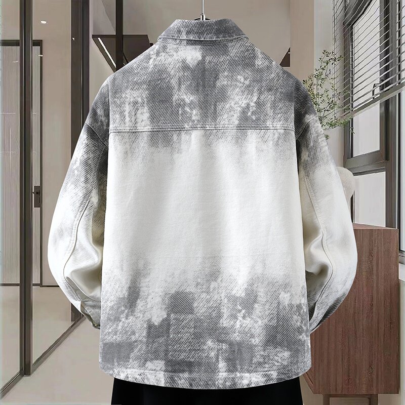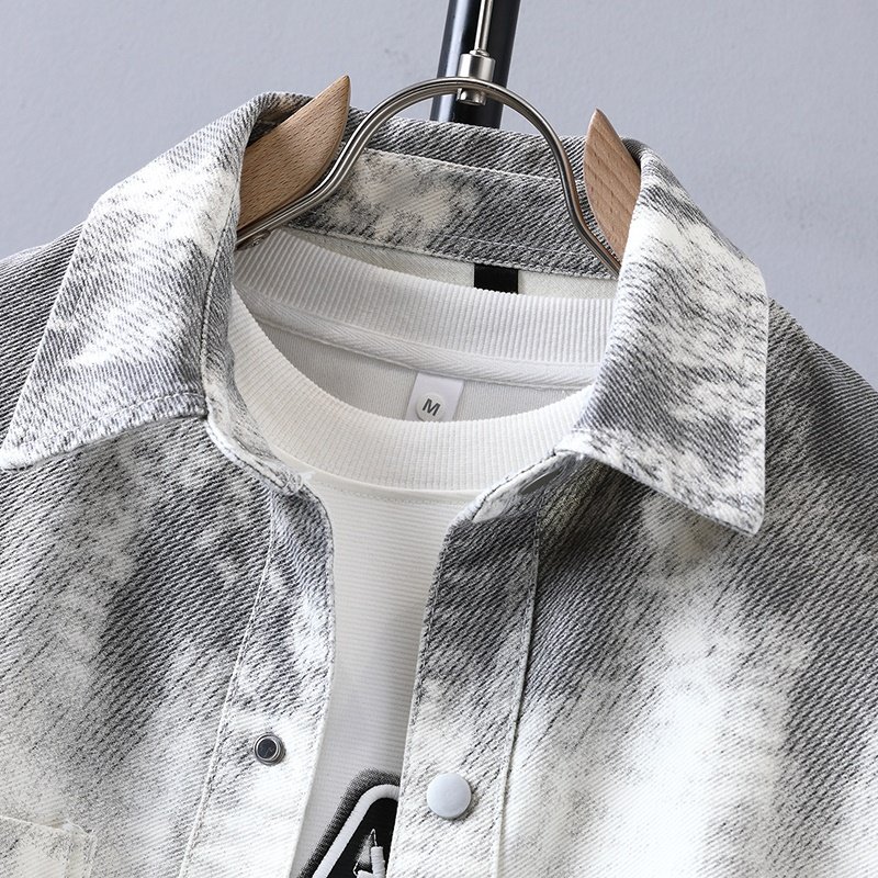 秋季新款港风牛仔夹克男士潮流设计感外套青少年上衣翻领渐变牛仔