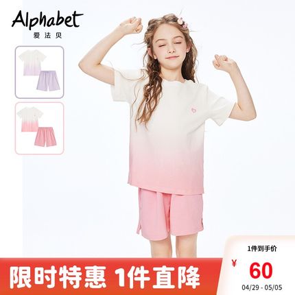 爱法贝童装2024夏季新款女童家居服儿童睡衣2件套套装