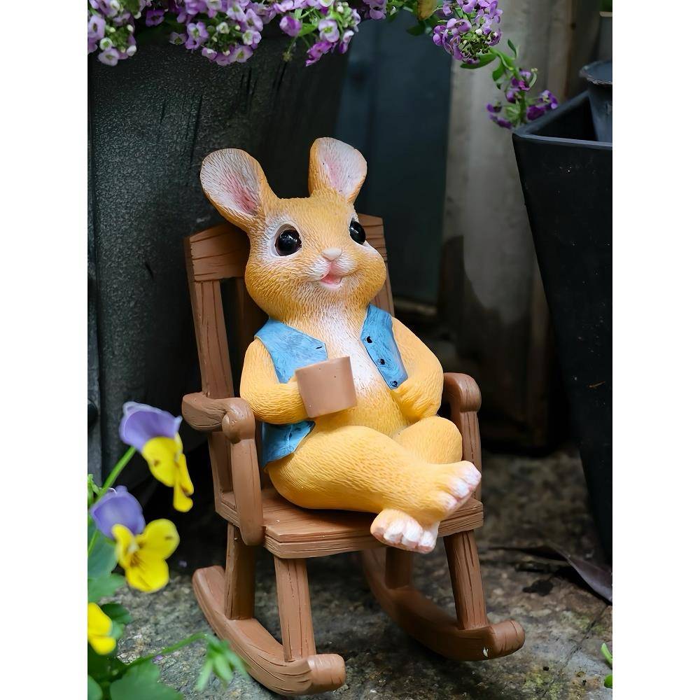 小兔子摇椅摆件户外庭院阳台创意花园动物桌面装饰造景工艺品摆设