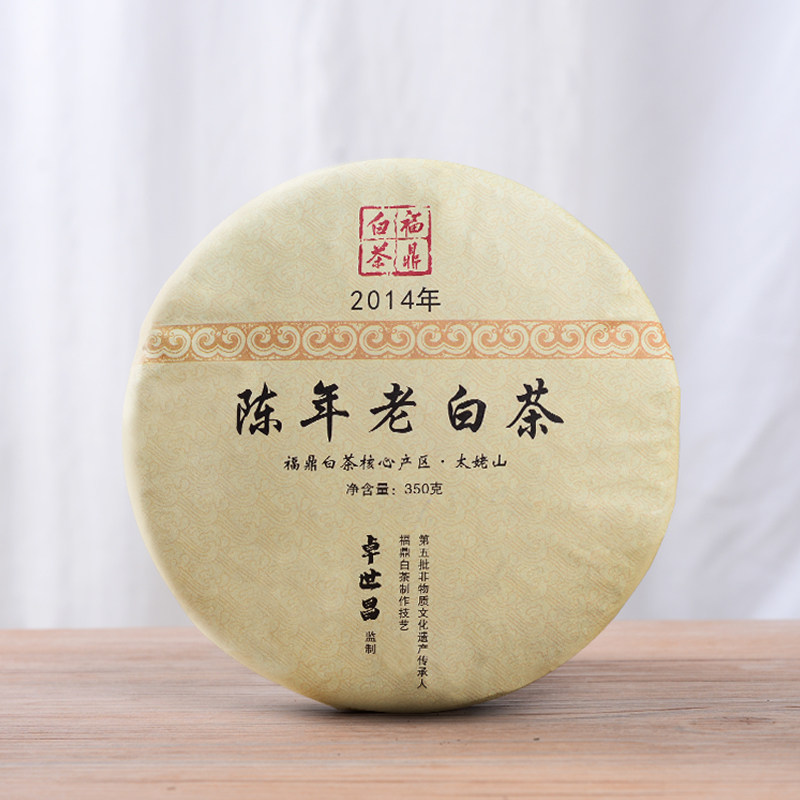 正宗2014年福鼎白茶寿眉茶叶茶饼陈年老白茶太姥山福鼎老白茶350g