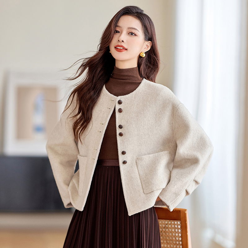 小香风双面呢羊毛外套女2024秋冬新款时髦休闲短款妮子大衣小个子