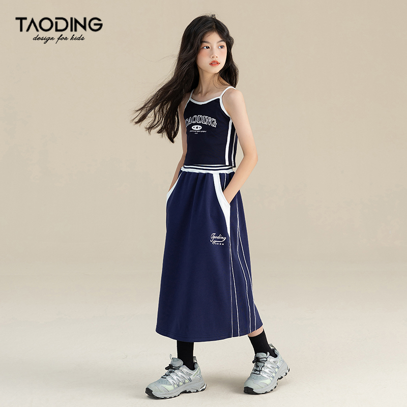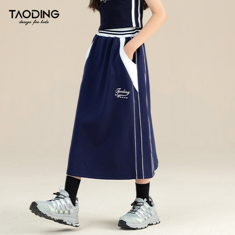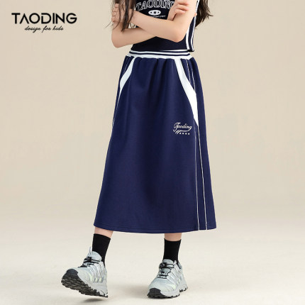 淘町女童半身裙春秋季新款中大童学院风针织运动休闲百搭中长裙