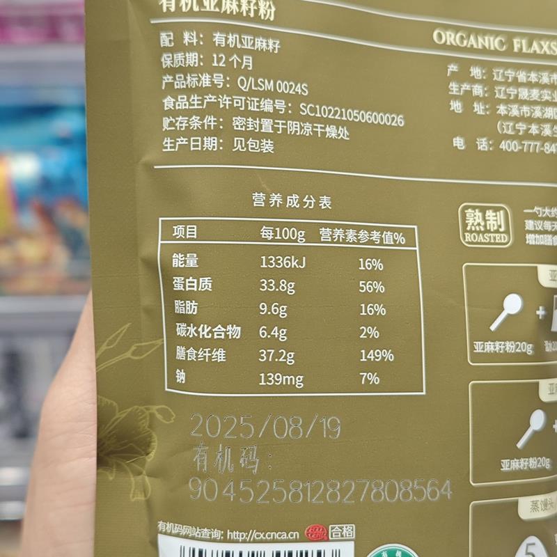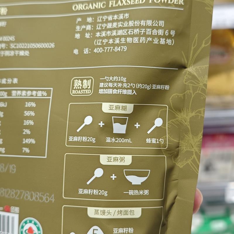 许昌pang东来有机亚麻籽粉250g即食代餐冲饮高膳食纤维代购