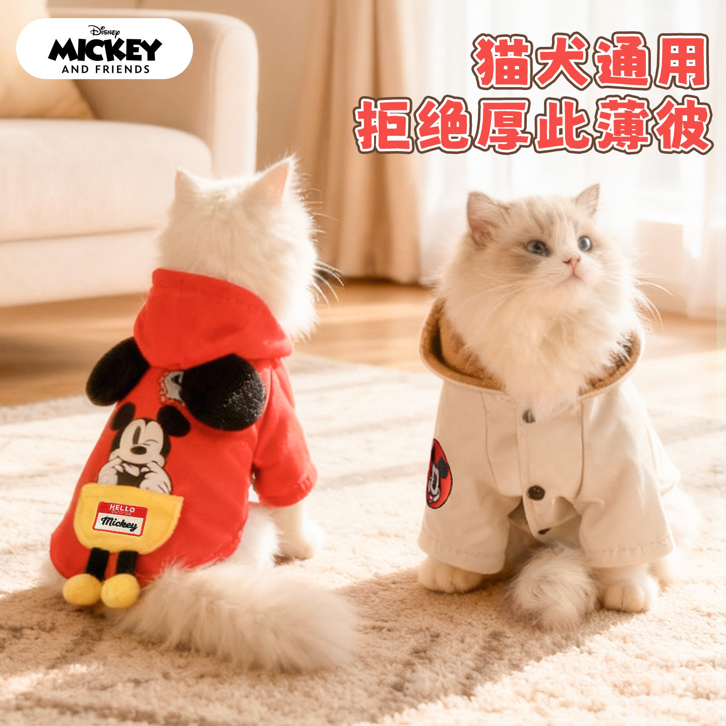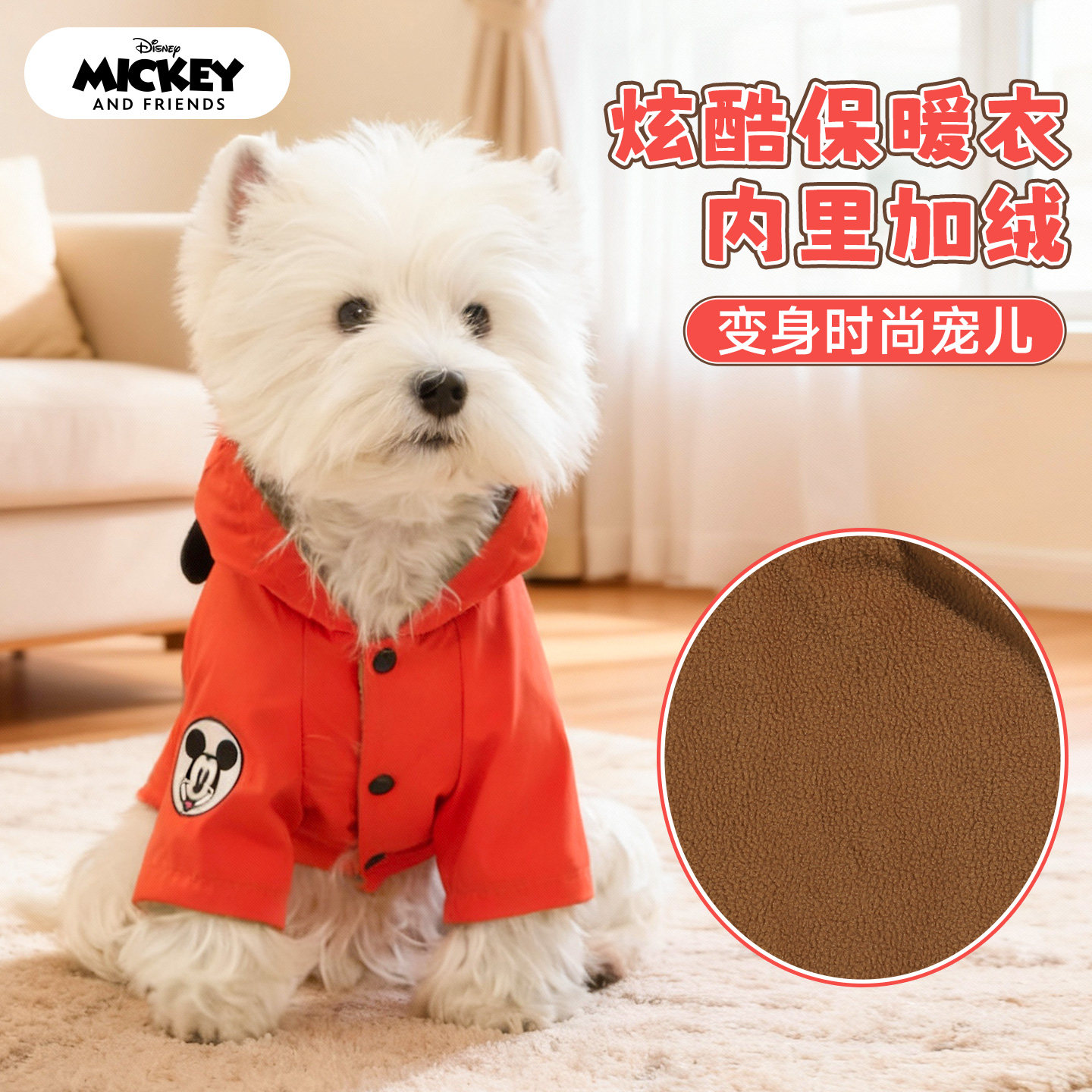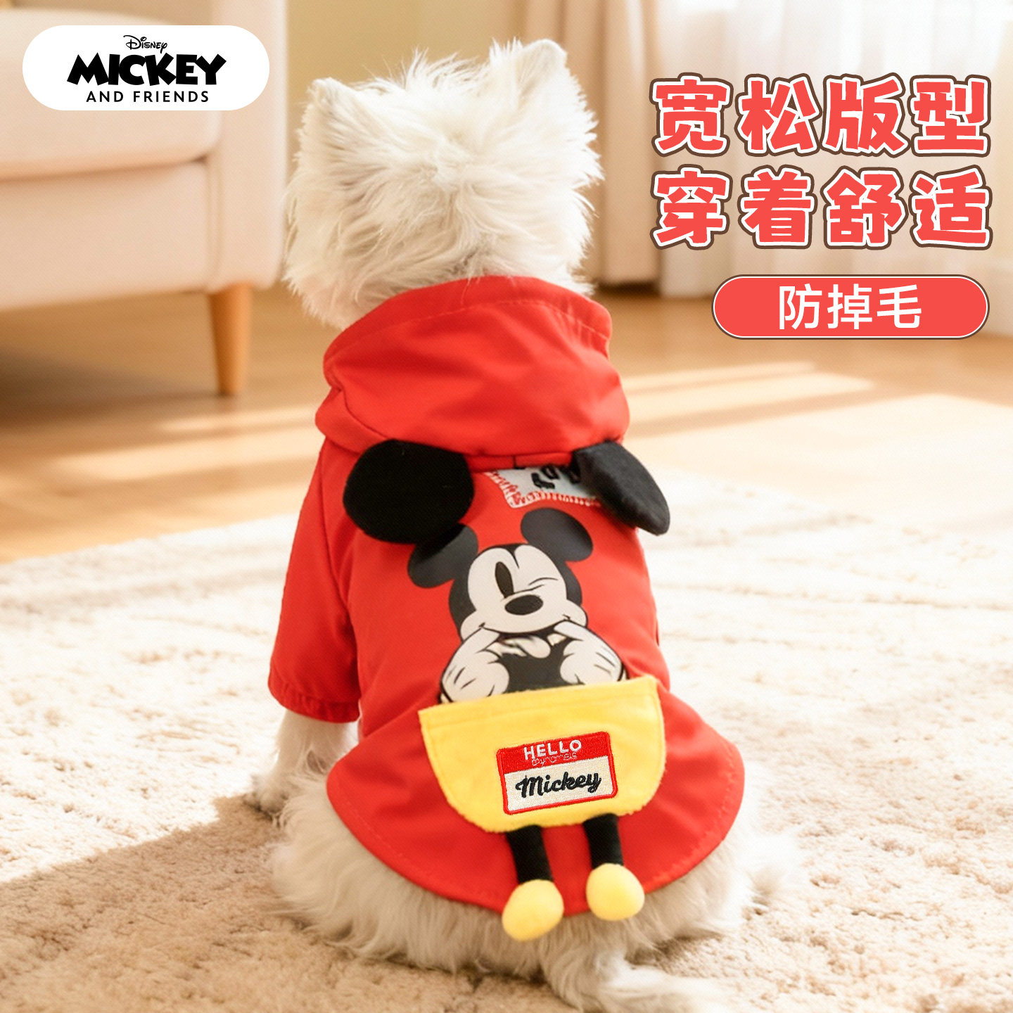 迪士尼米奇狗狗衣服泰迪柯基金毛中大型狗秋冬装连帽宠物保暖卫衣