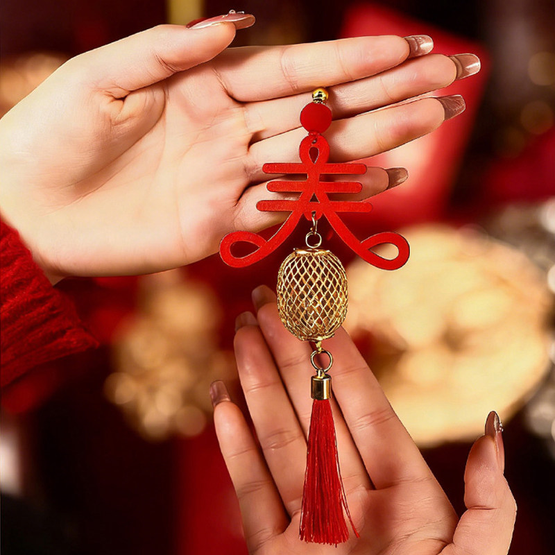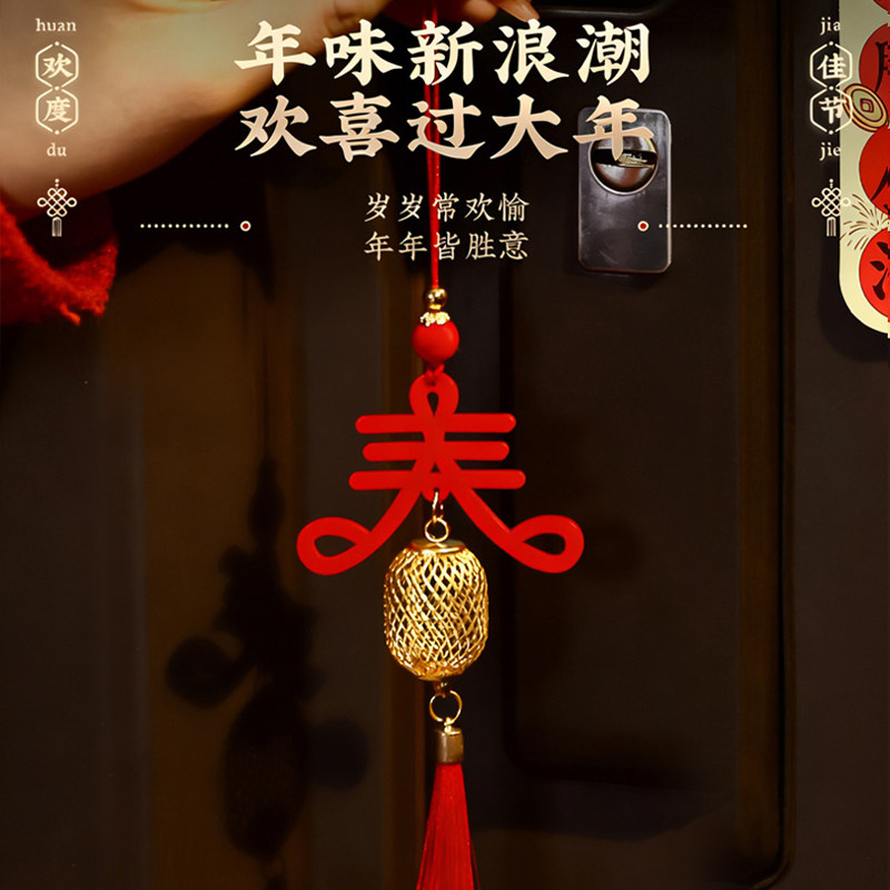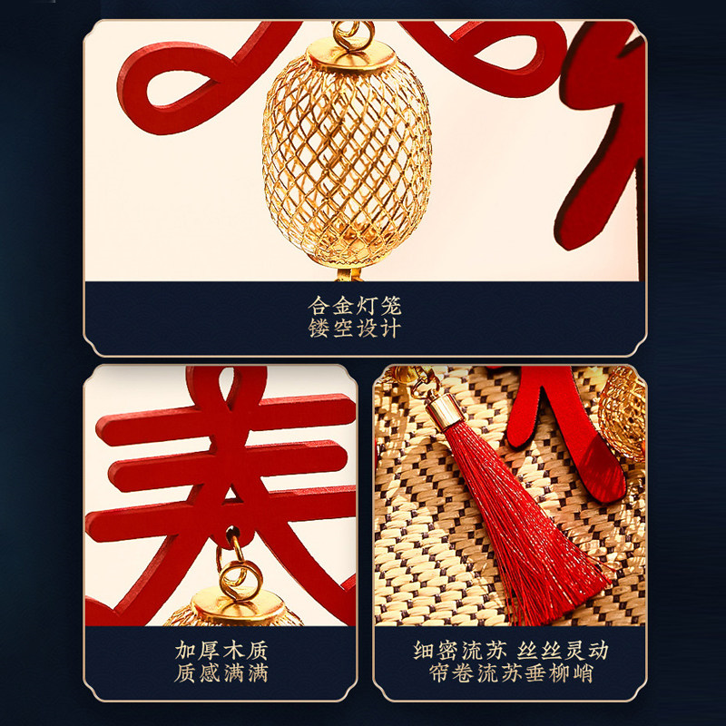 新年红色木牌春字挂件金属灯笼球挂饰店铺客厅绿植小挂饰汽车挂件