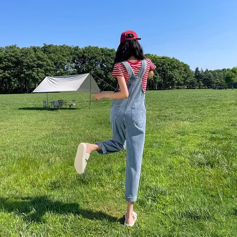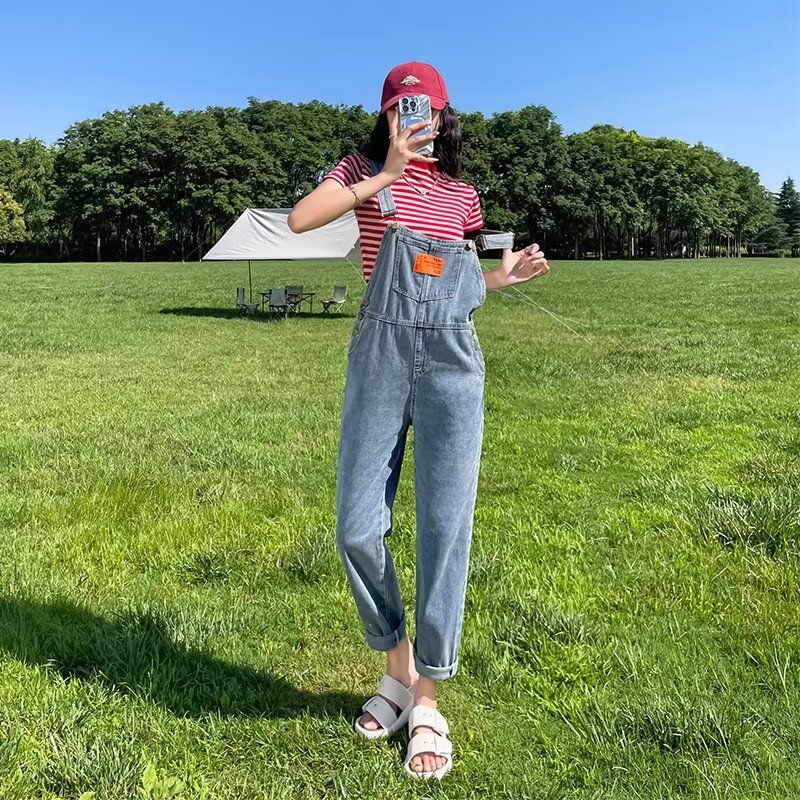 高腰显瘦牛仔背带裤春季新款直筒工装设计感小众休闲阔腿连体裤女