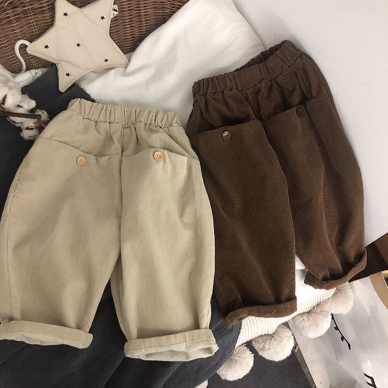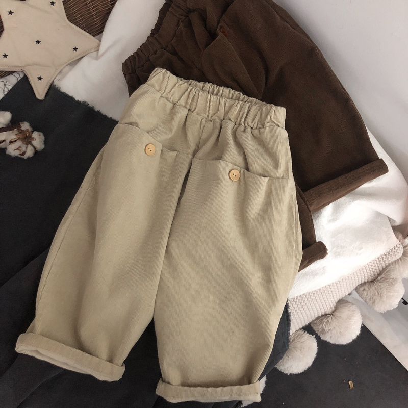 儿童裤子高级感软糯条绒裤男童女童灯芯绒宽松哈伦裤休闲萝卜裤潮